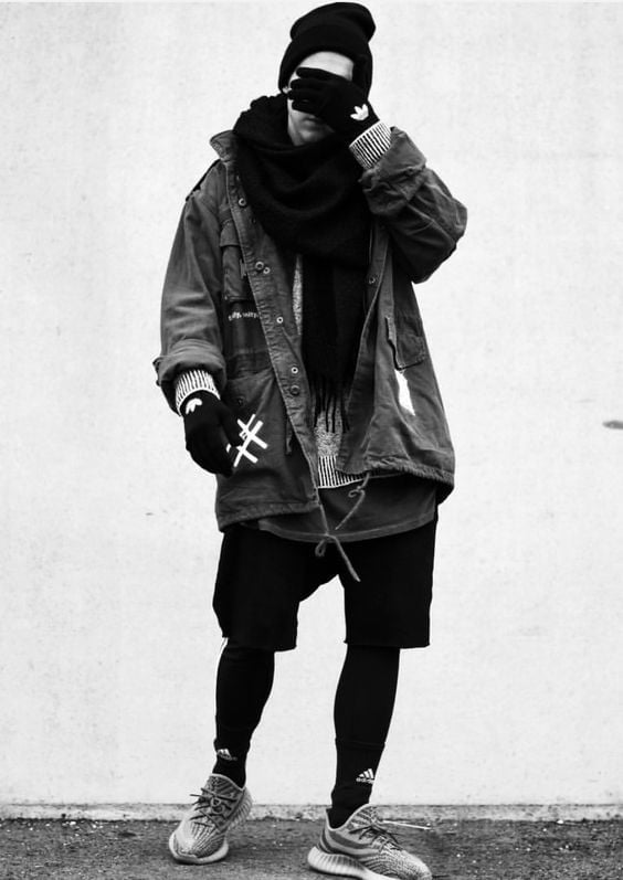 Set đồ cực phong cách cho mùa đông, với sự kết hợp hoàn hảo của đôi giày Yeezy 350 V2 Beluga 2.0 cùng đôi tất cao cổ và quần đùi, ở trên là phối đồ với áo thun rộng và áo khoác kaki cùng khăn len và mũ len, tất cả mang đến một style cực chất và nổi bật.
