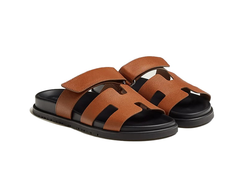 Dép Hermes Chypre Sandal Natural Black Epsom Leather Best Quality