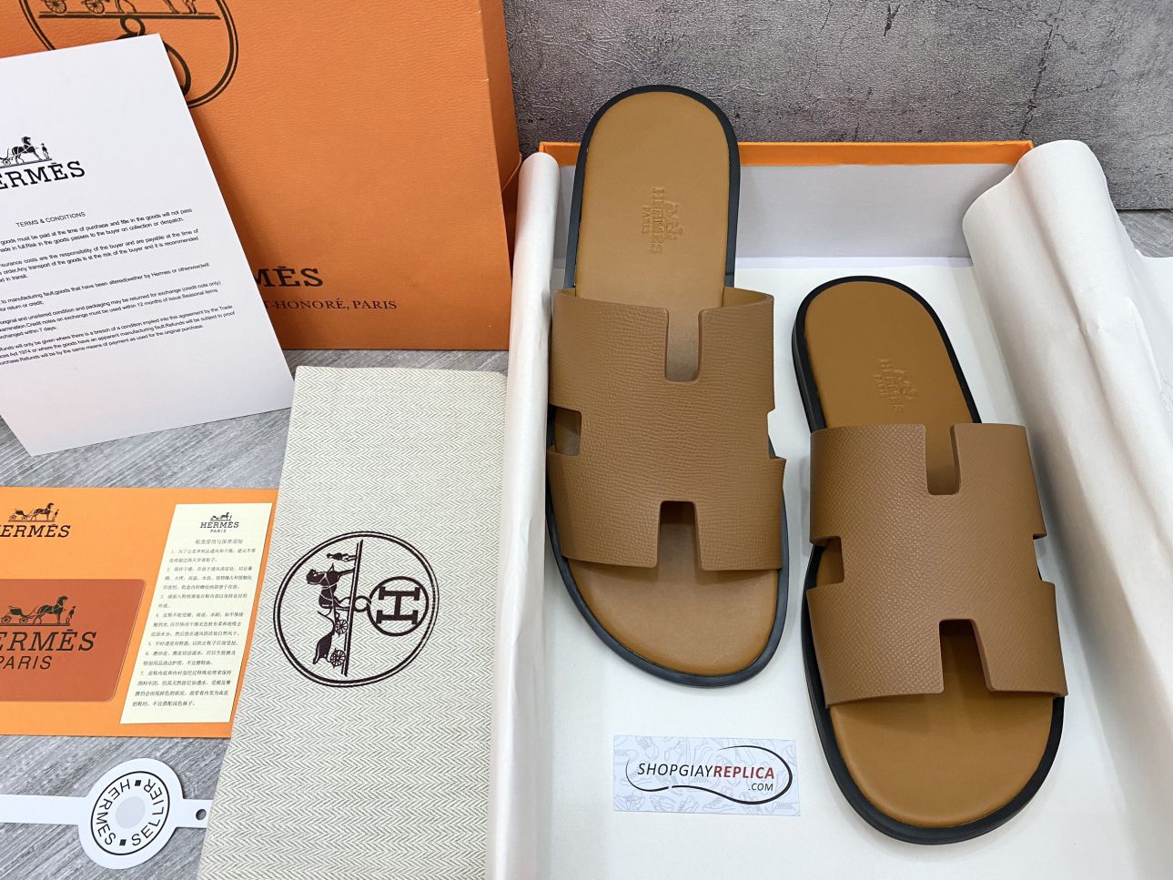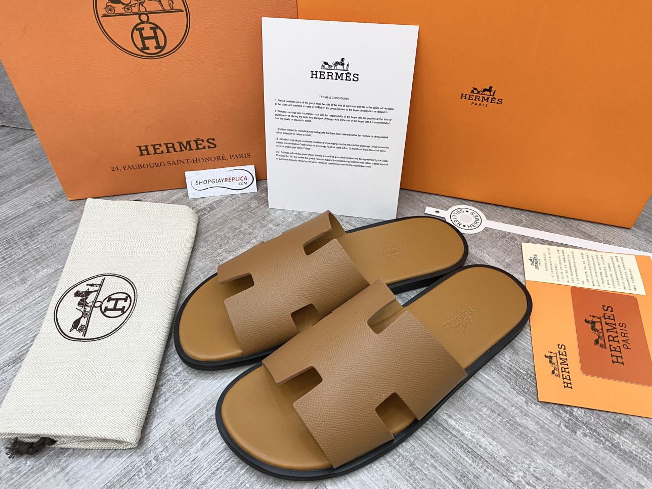 Dép Hermes Izmir Da Taiga (sần) Full Nâu rep 1:1
