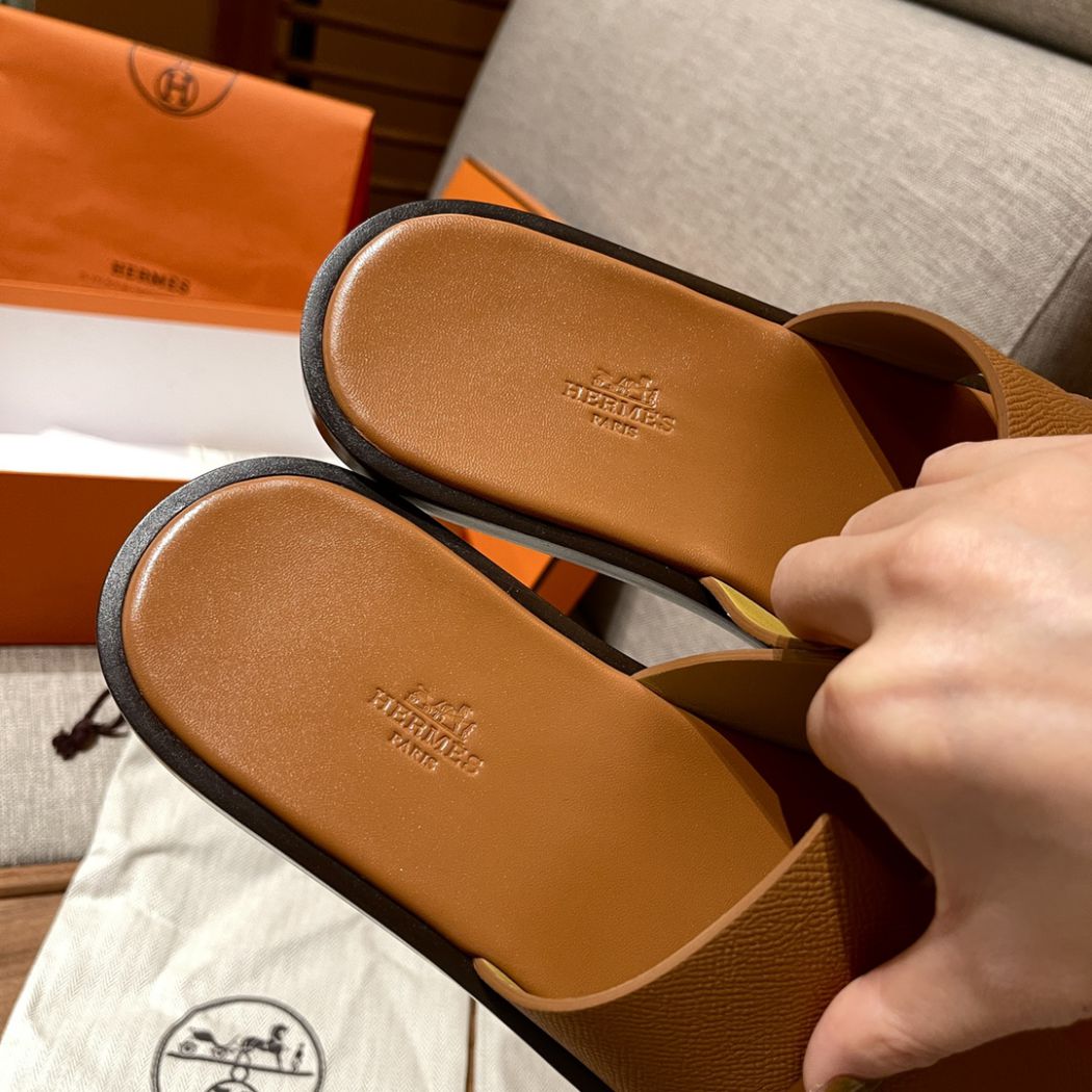 Dép Hermes Izmir Epsom Leather Brown Best Quality