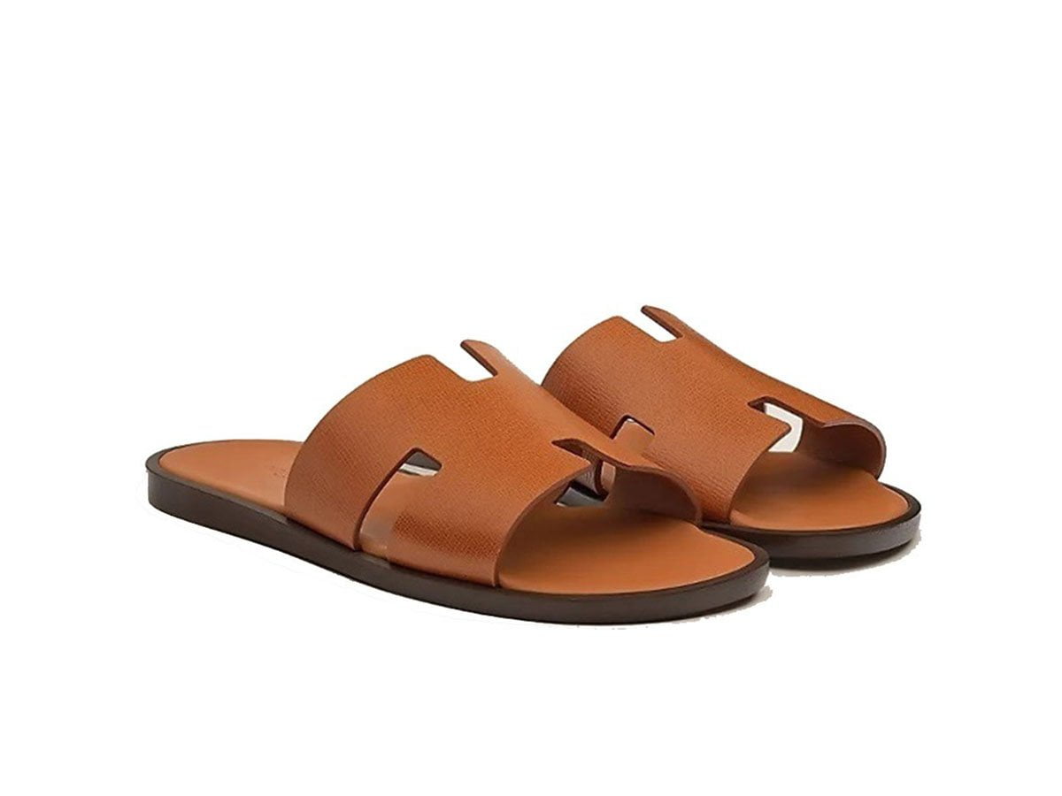 Dép Hermes Izmir Epsom Leather Brown Best Quality