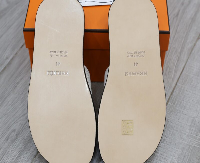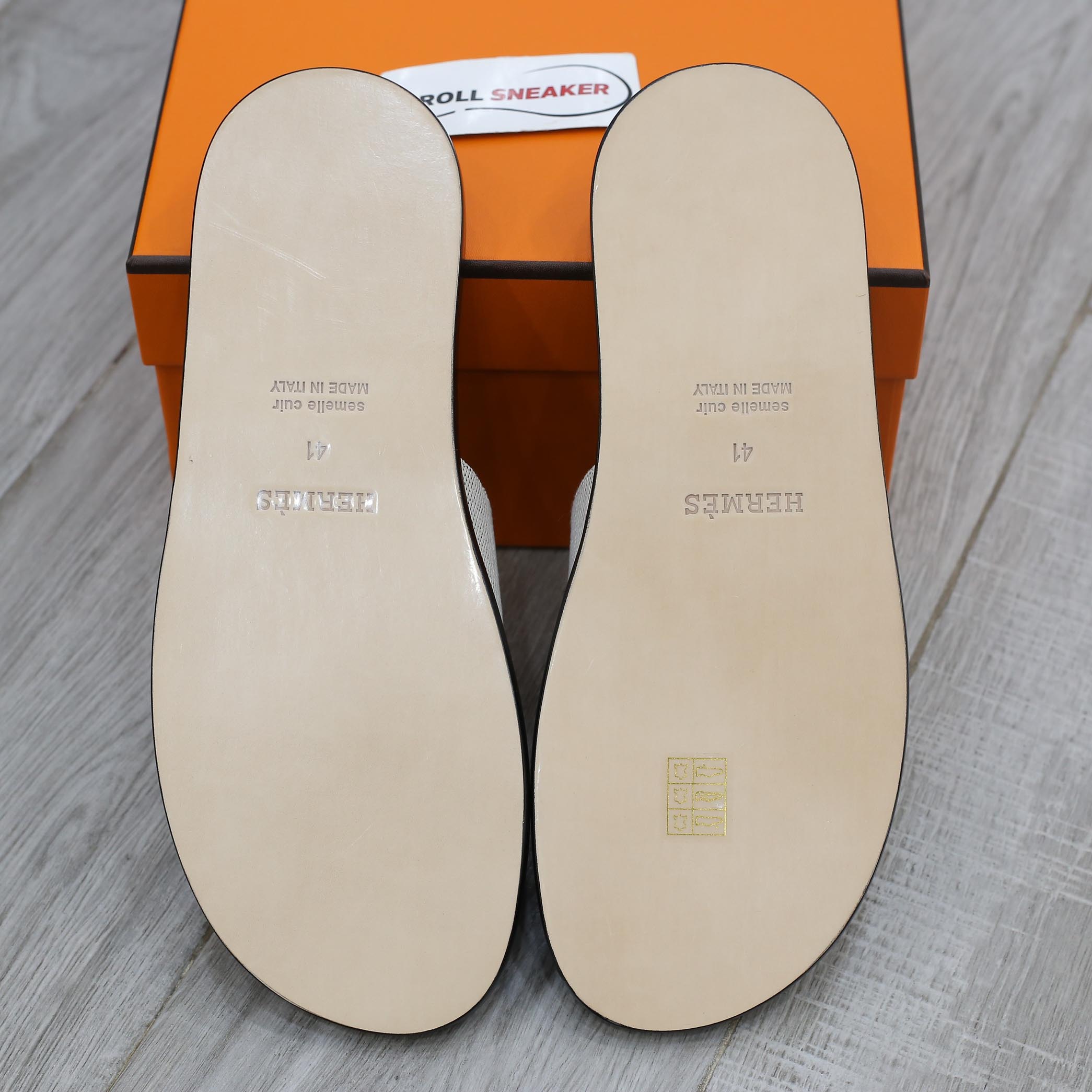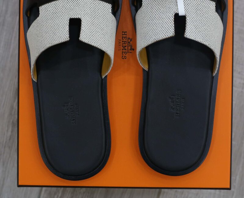 Dép Hermes Nam Canvas Bicolor Black White Like Auth
