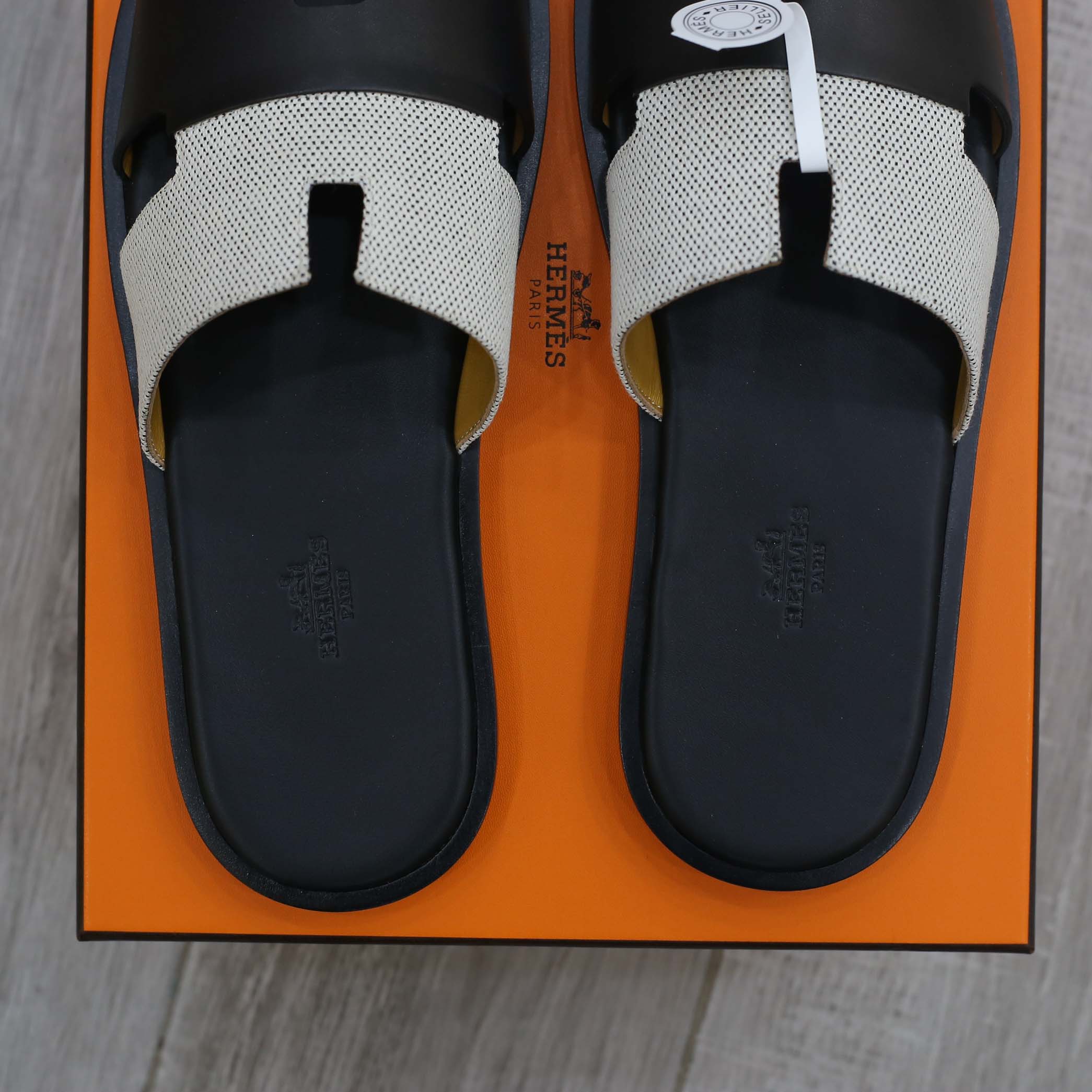 Dép Hermes Nam Canvas Bicolor Black White Best Quality