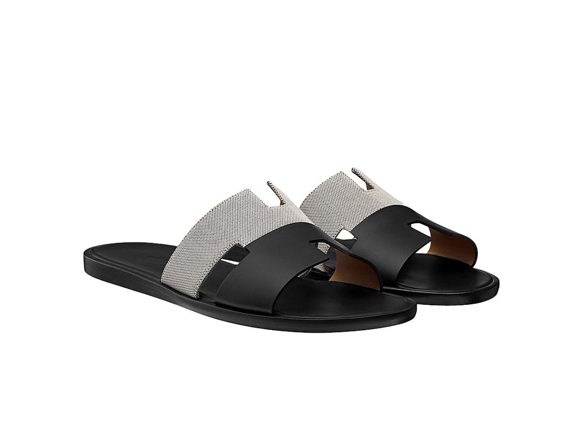 Dép Hermes Nam Canvas Bicolor Trắng Đen