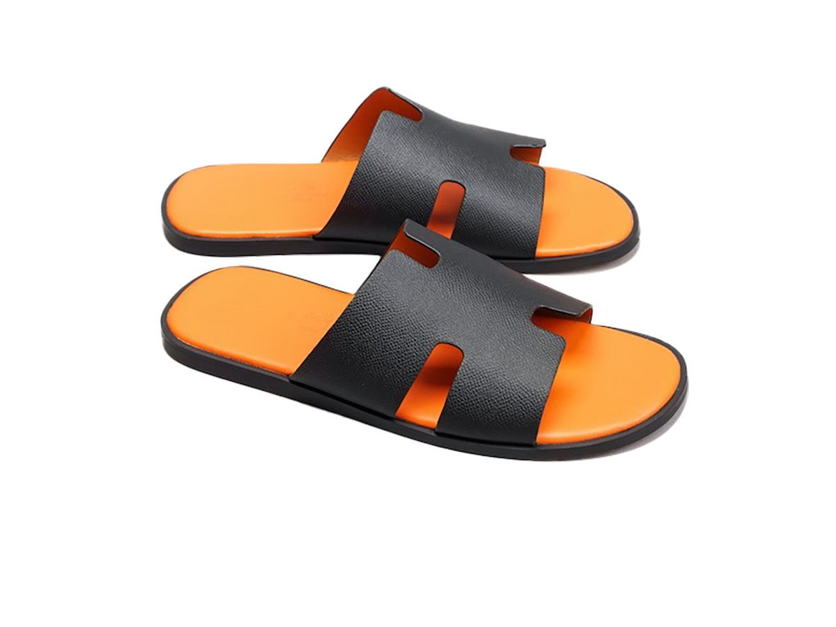 Dép chữ H Hermes Nam Da Taiga Màu Đen Đế Cam siêu cấp rep 1:1