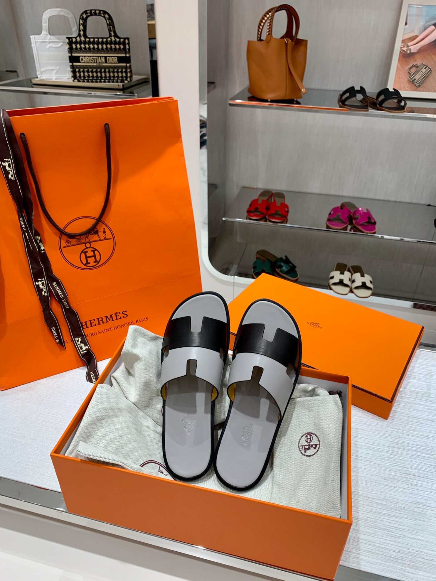 Lợi ích khi mua Dép Hermes Nam Da Trơn Bicolor Xám Đen Best Quality replica 1:1 tại Shop giày Replica™