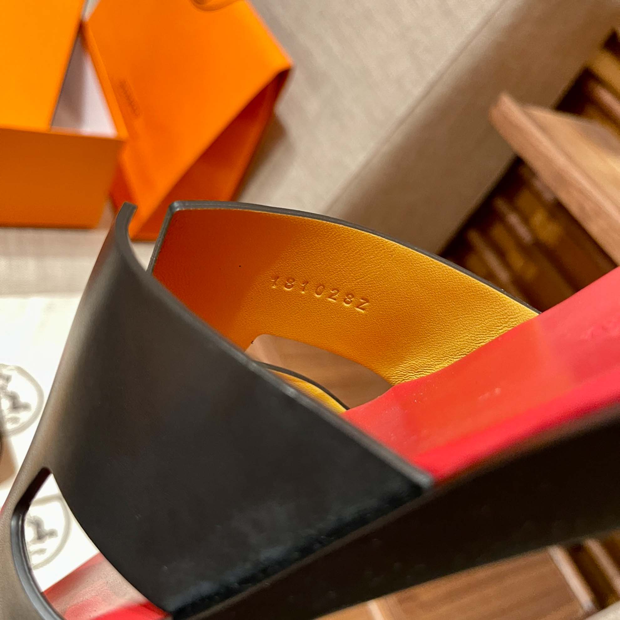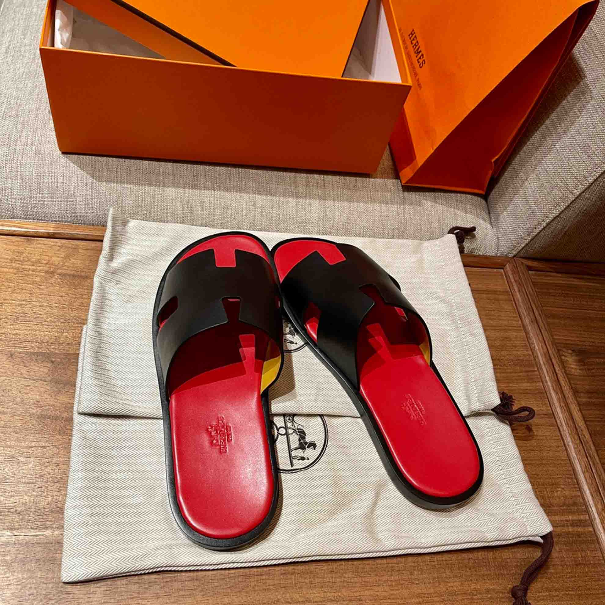 Dép Hermes Nam Da Trơn Đen lót Đỏ Tươi Best Quality