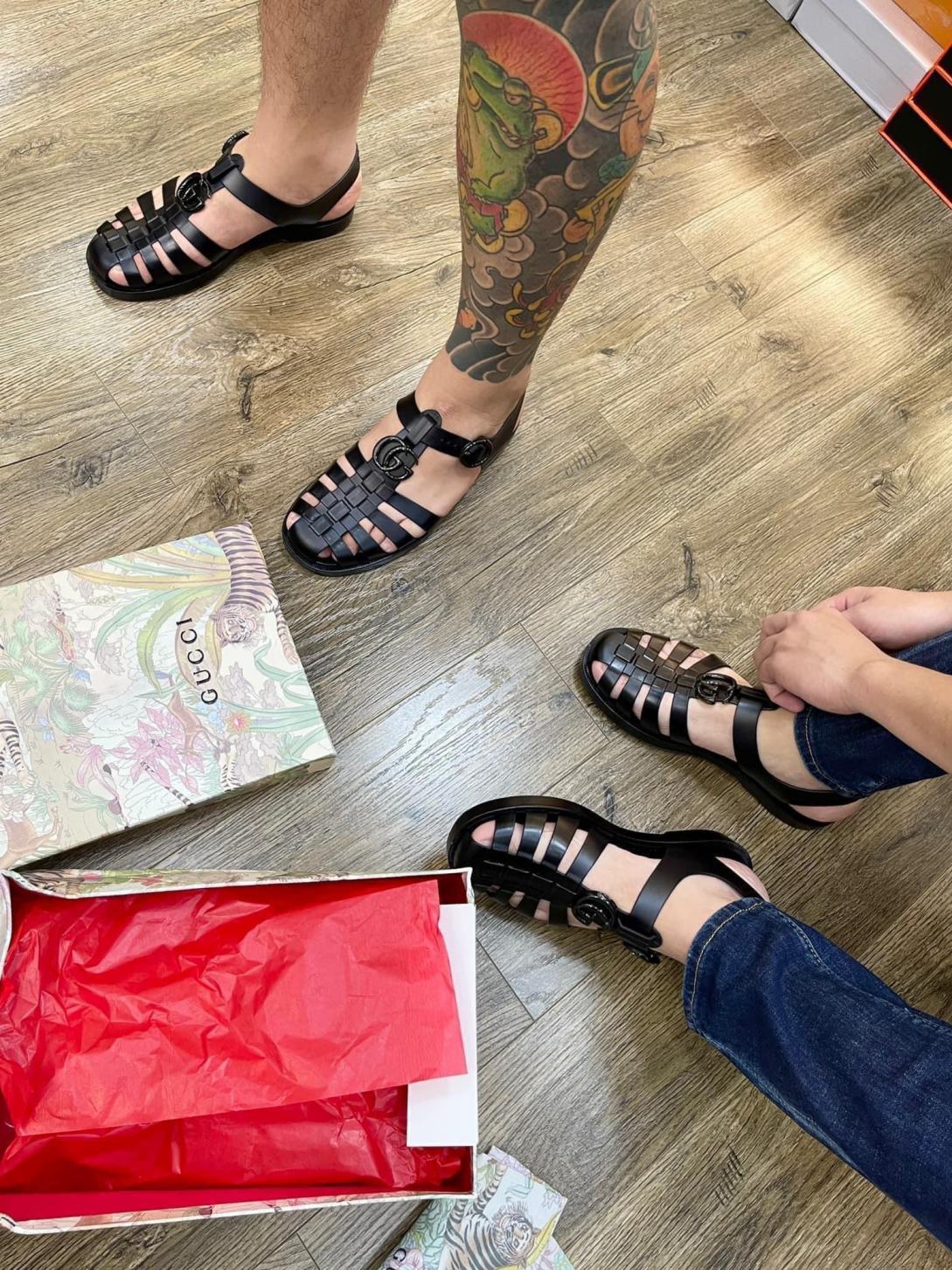 onfeet Dép Rọ Gucci Đen mặt GG Siêu Cấp