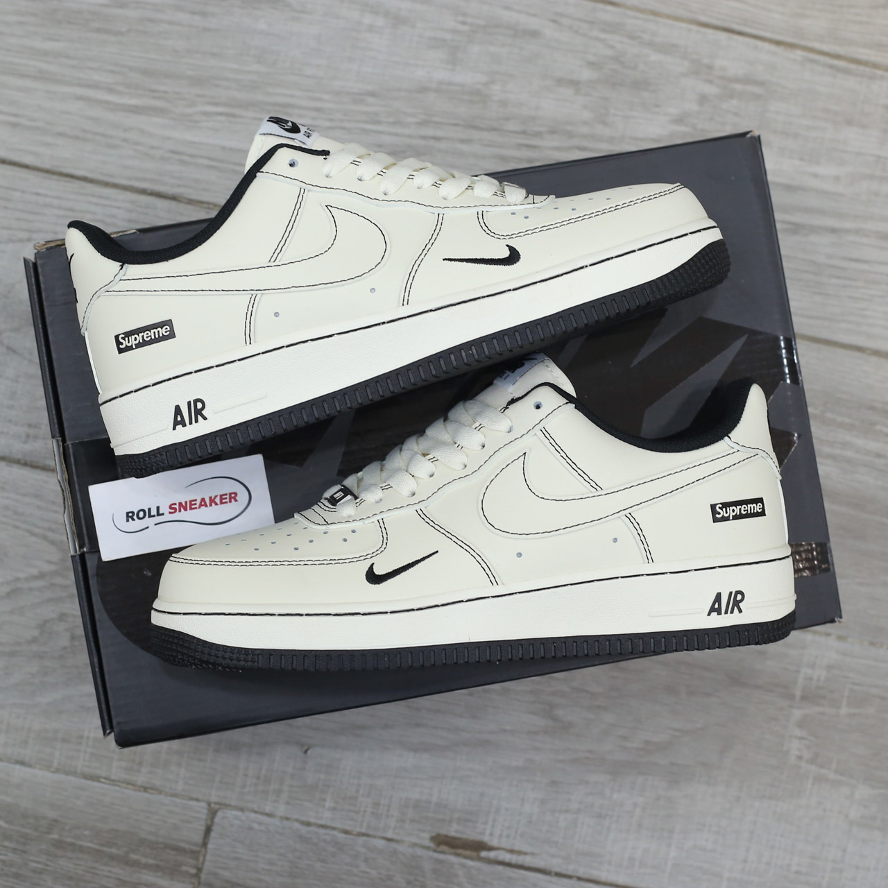 Giày Air Force 1 x Supreme White Black Like Auth