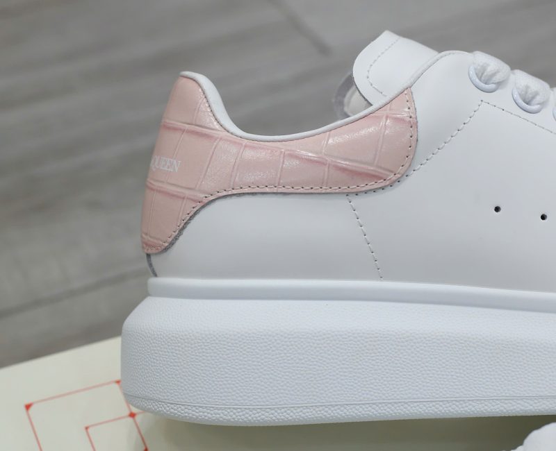 Giày Alexander Mcqueen Trắng Gót Hồng Vân Cá Sấu Best Quality