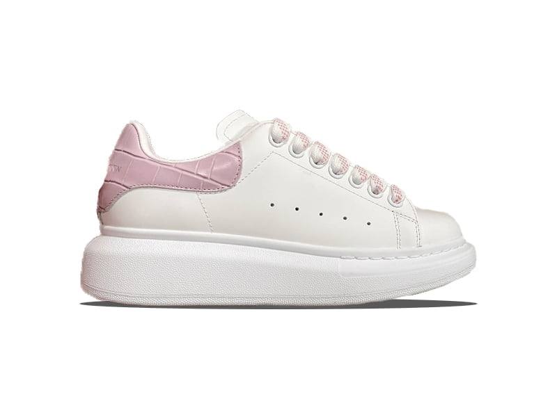 Giày Alexander Mcqueen Trắng Gót Hồng Vân Cá Sấu Like Auth