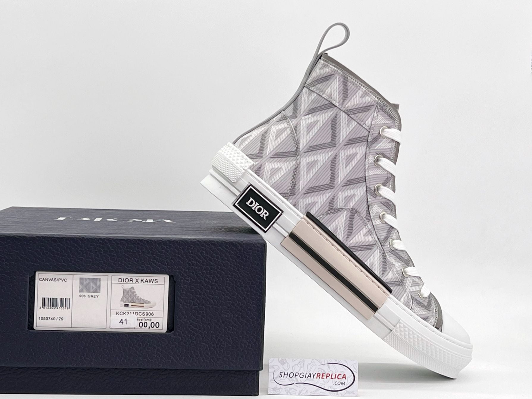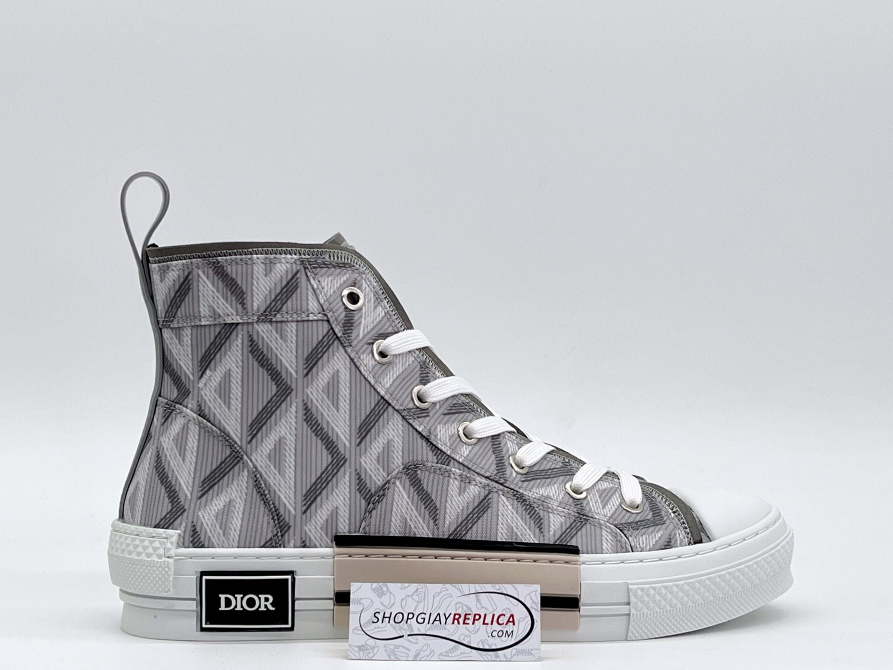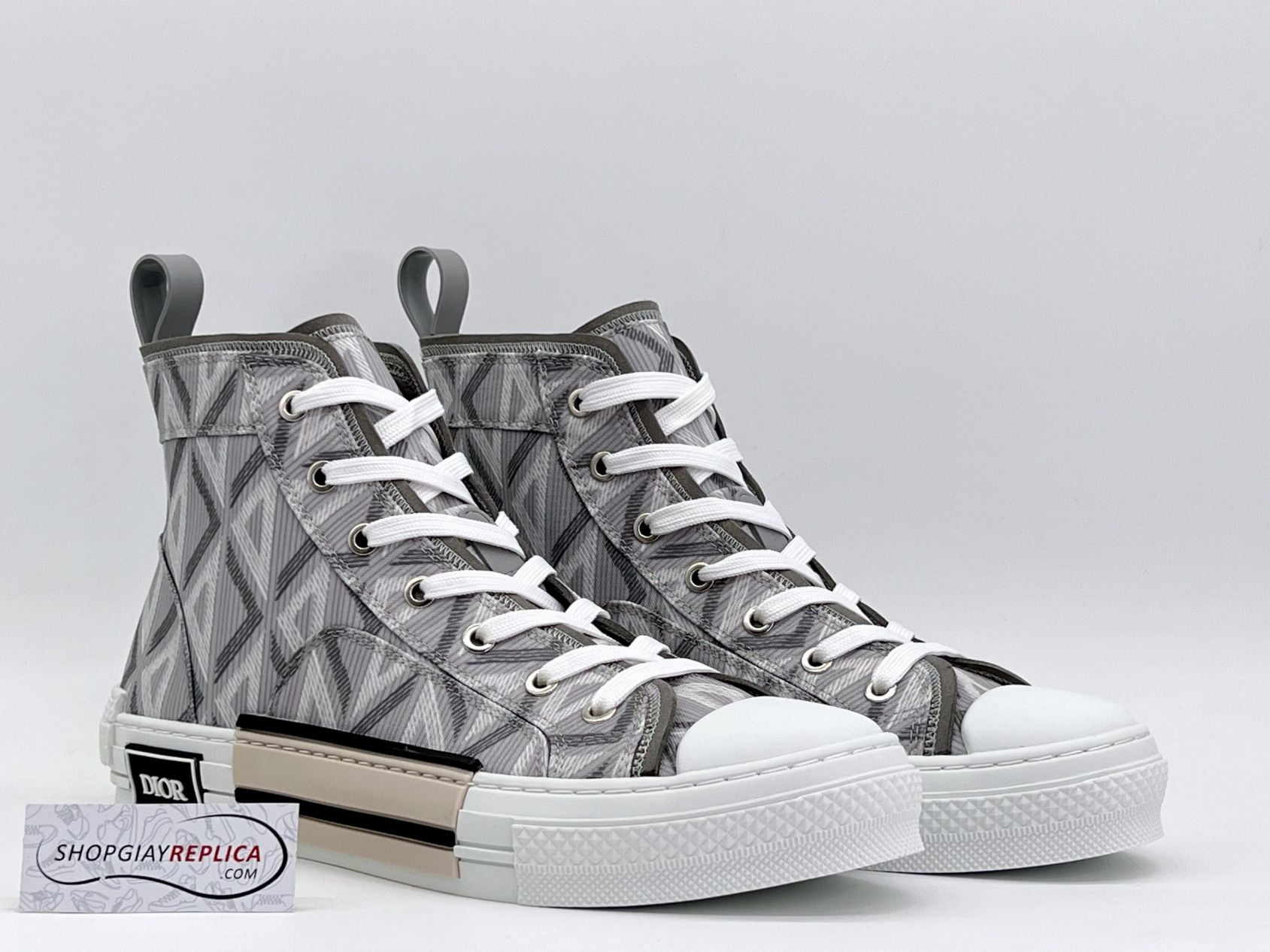 Giày Dior B23 cổ cao màu Xám Gray họa tiết CD Diamond like auth