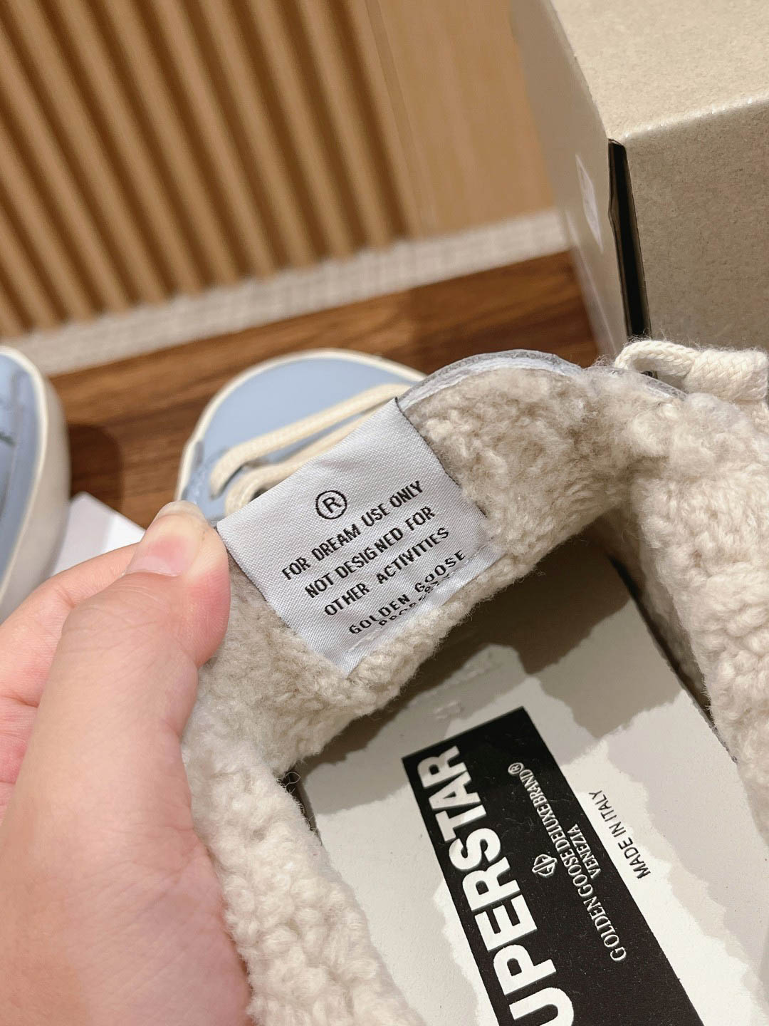 Lợi ích khi mua Giày Golden Goose Women’s Super-Star Sabots Silver Glitter Star & Shearling Lining Powder Blue Low Best Quality replica 1:1 tại Shop giày Replica™