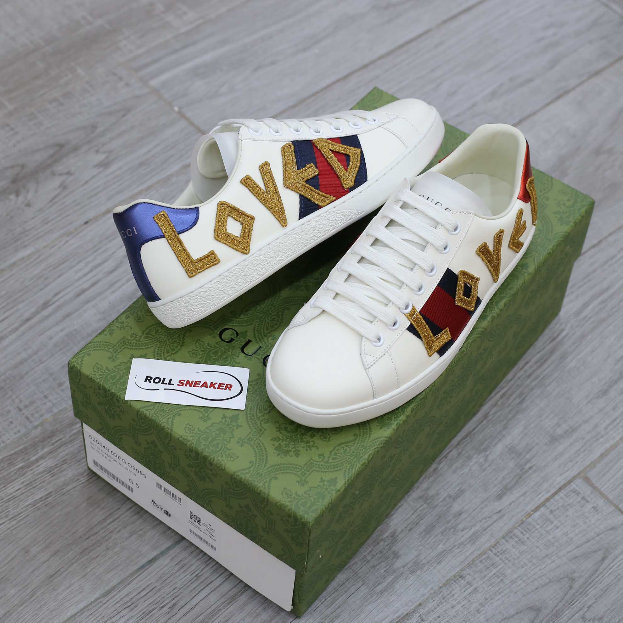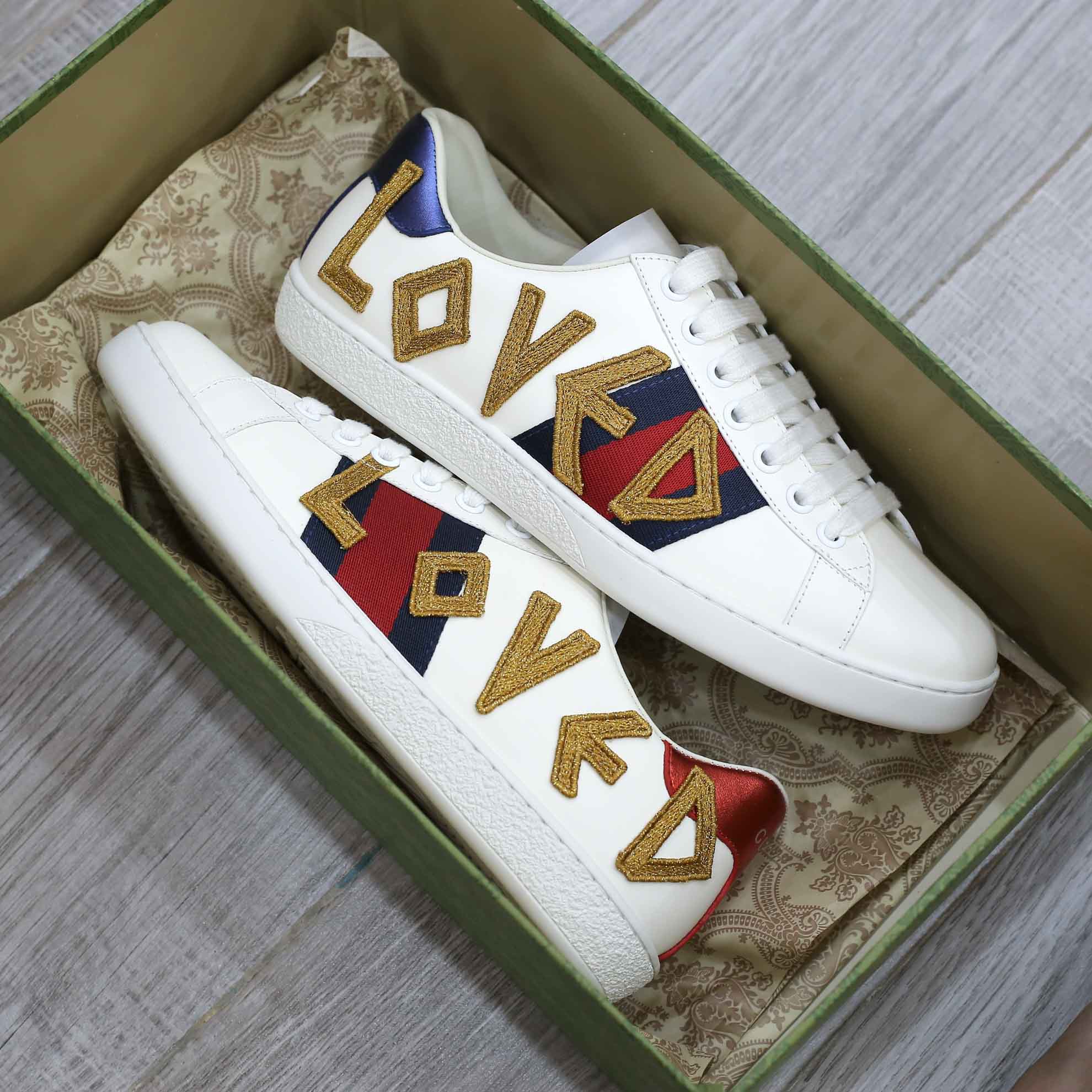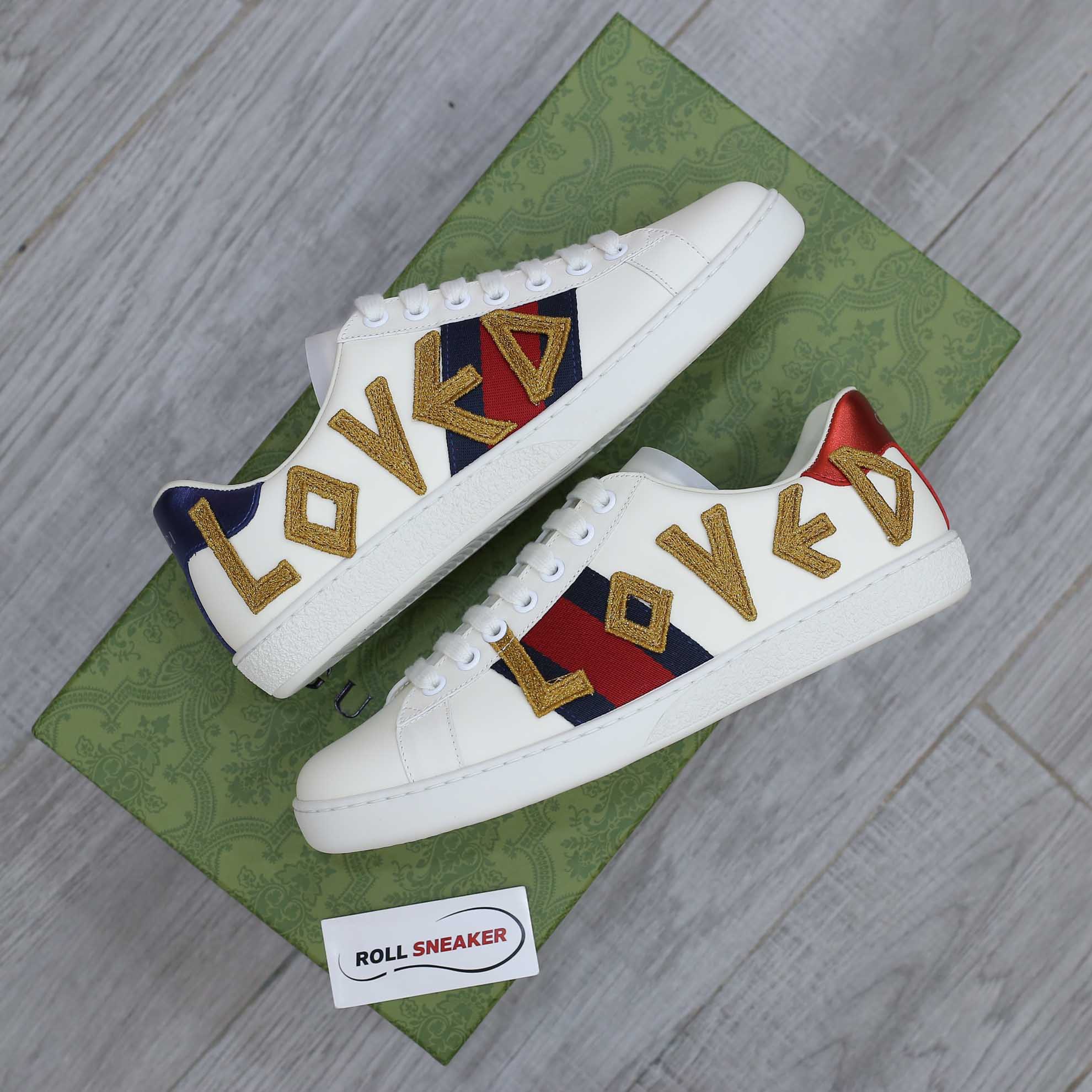 Giày Gucci Ace loved thường được các cặp đôi sử dụng làm giày cặp với nhau. Bộ sưu tập này là sự biến tấu từ Gc Blind For Love. Về form dáng cực kỳ thon gọn, hai bên má ngoài của sản phẩm được thêu chữ LOVED theo phong cách cách điệu tạo điểm nhấn ấn tượng,. Đây cũng là thông điệp mà thương hiệu muốn truyền tải sự yêu thương đến với mọi người.