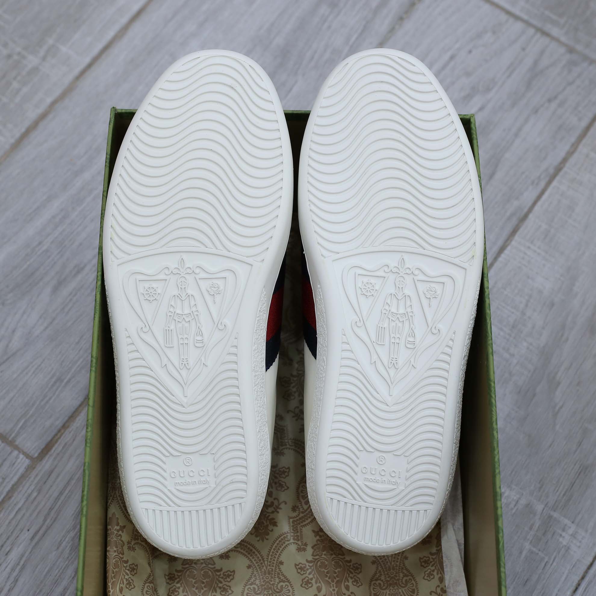 Đế giày Gucci love được làm 100% từ cao su cao cấp, đường vân chống trơn trượt cho bạn khi sử dụng. Chất da bê mềm mại toàn bộ trên phần thân giày tạo cảm giác đi cực êm chân, thoải mái.