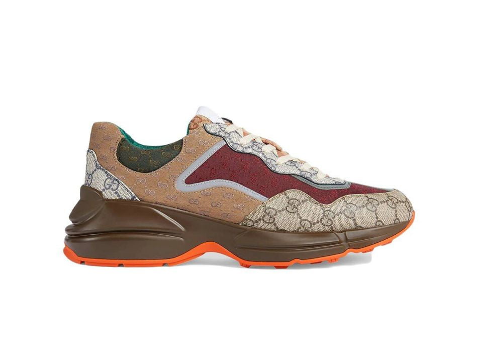 Giày Gucci GG Rhyton sneaker Beige Brick Red and Brown vải Canvas/Jacquard Like Auth