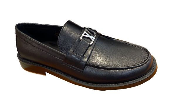 Giày Loafer Louis Vuitton Major Black Da Bê Tron Khóa Logo Lv Bạc