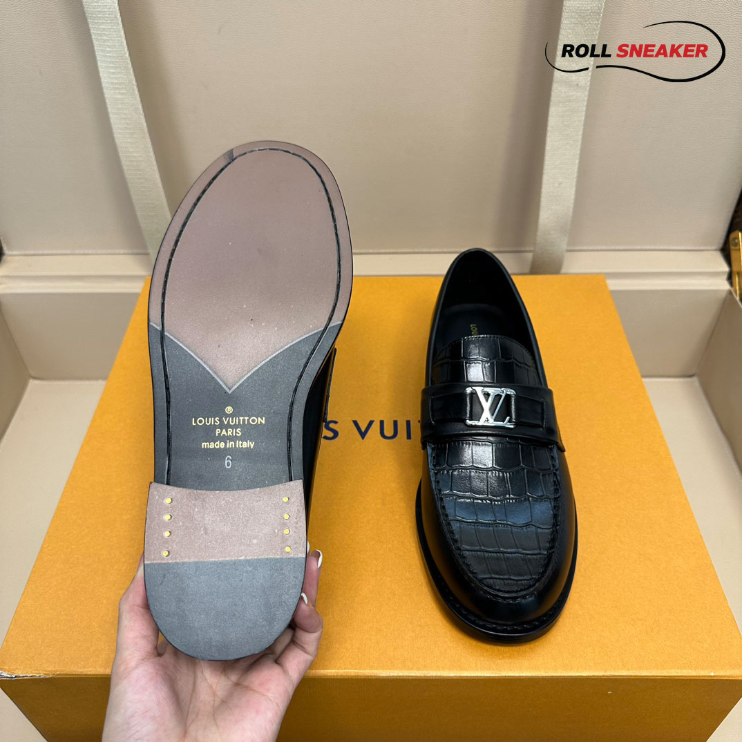 Giày Loafer LV Major Black Da Cá Sấu Logo LV Bạc