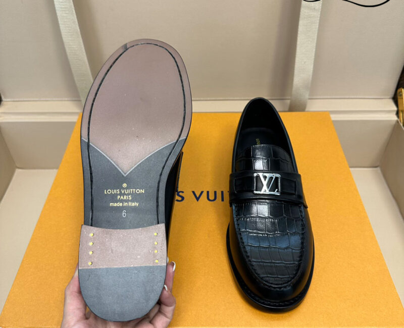 Giày Loafer LV Major Black Da Cá Sấu Logo LV Bạc