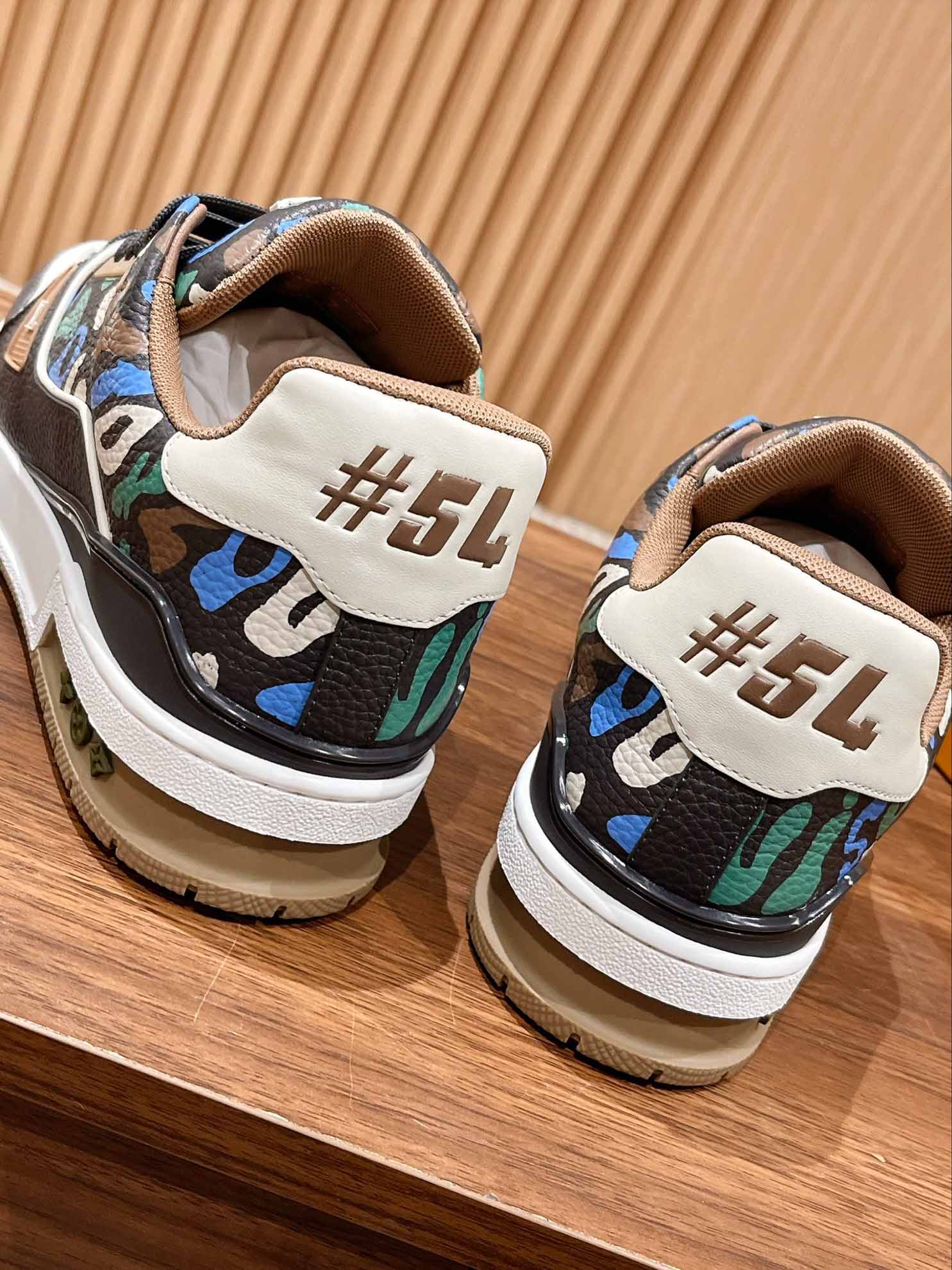 Giày Louis Vuitton Lv Trainer #54 Khaki Green Camouflage Printed Canvas