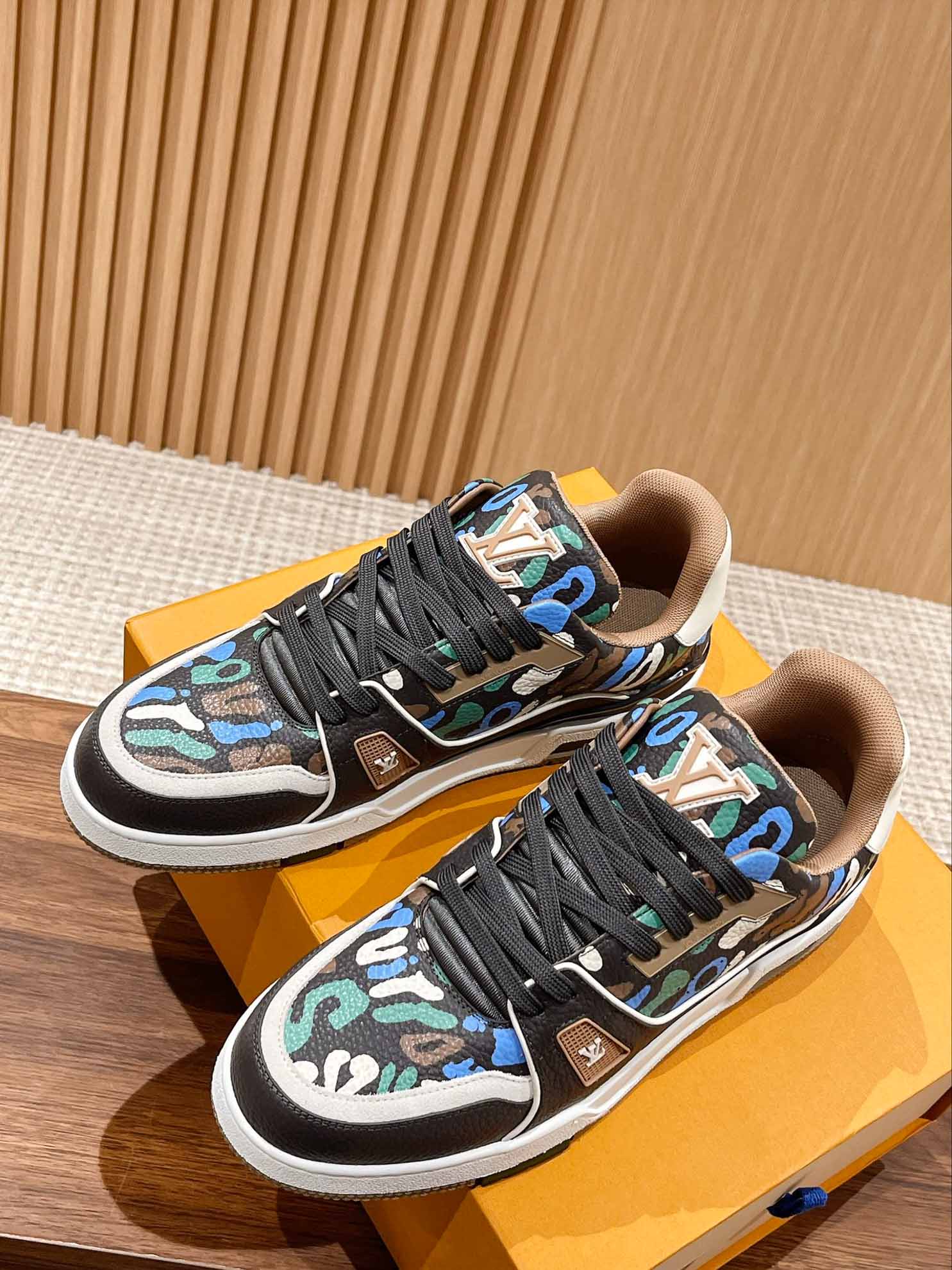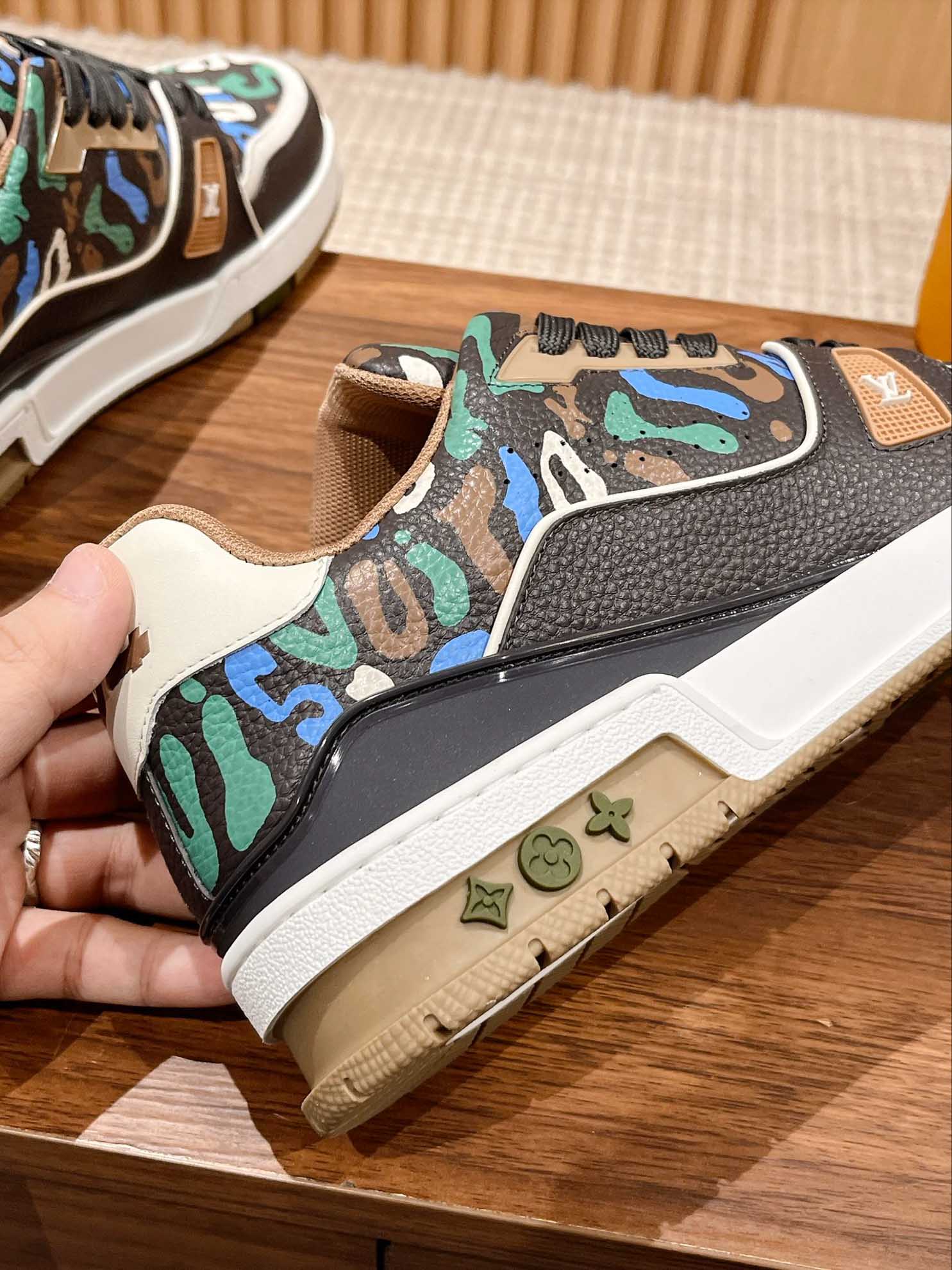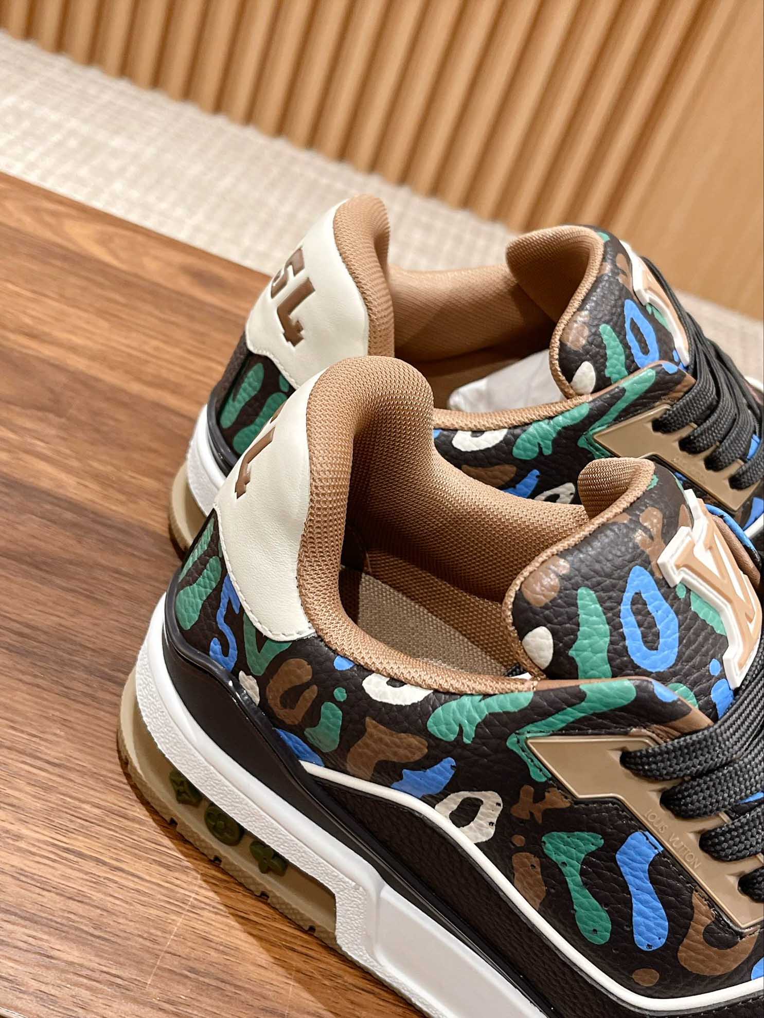 Giày Louis Vuitton Lv Trainer #54 Khaki Green Camouflage Printed Canvas Best Quality