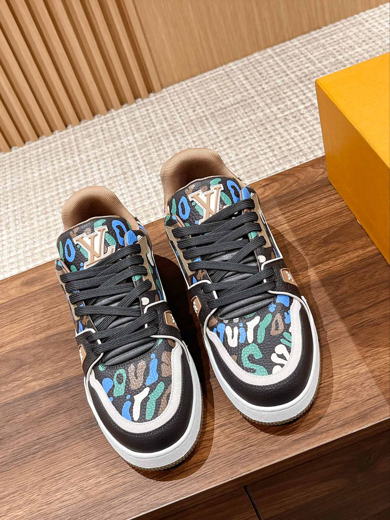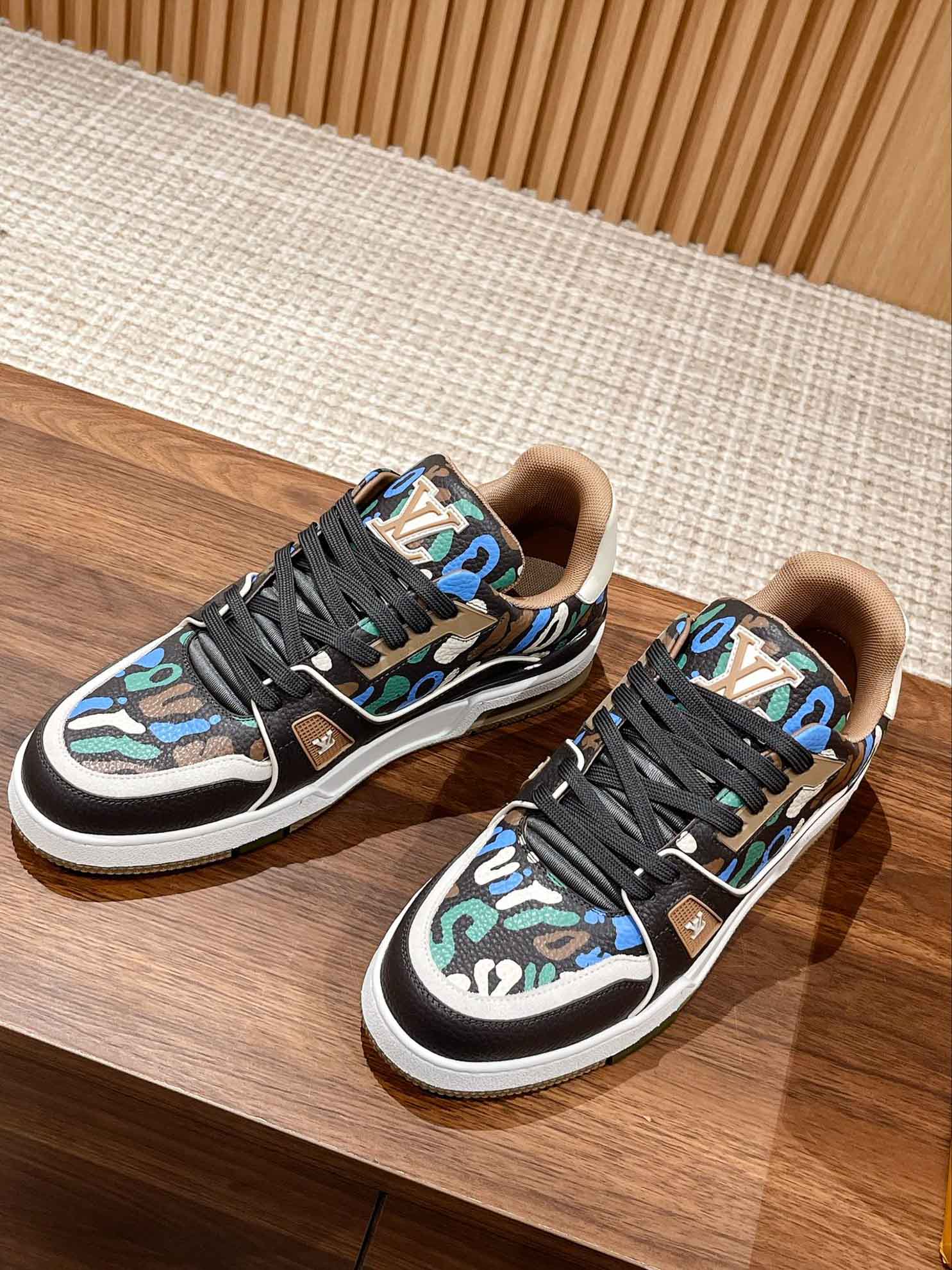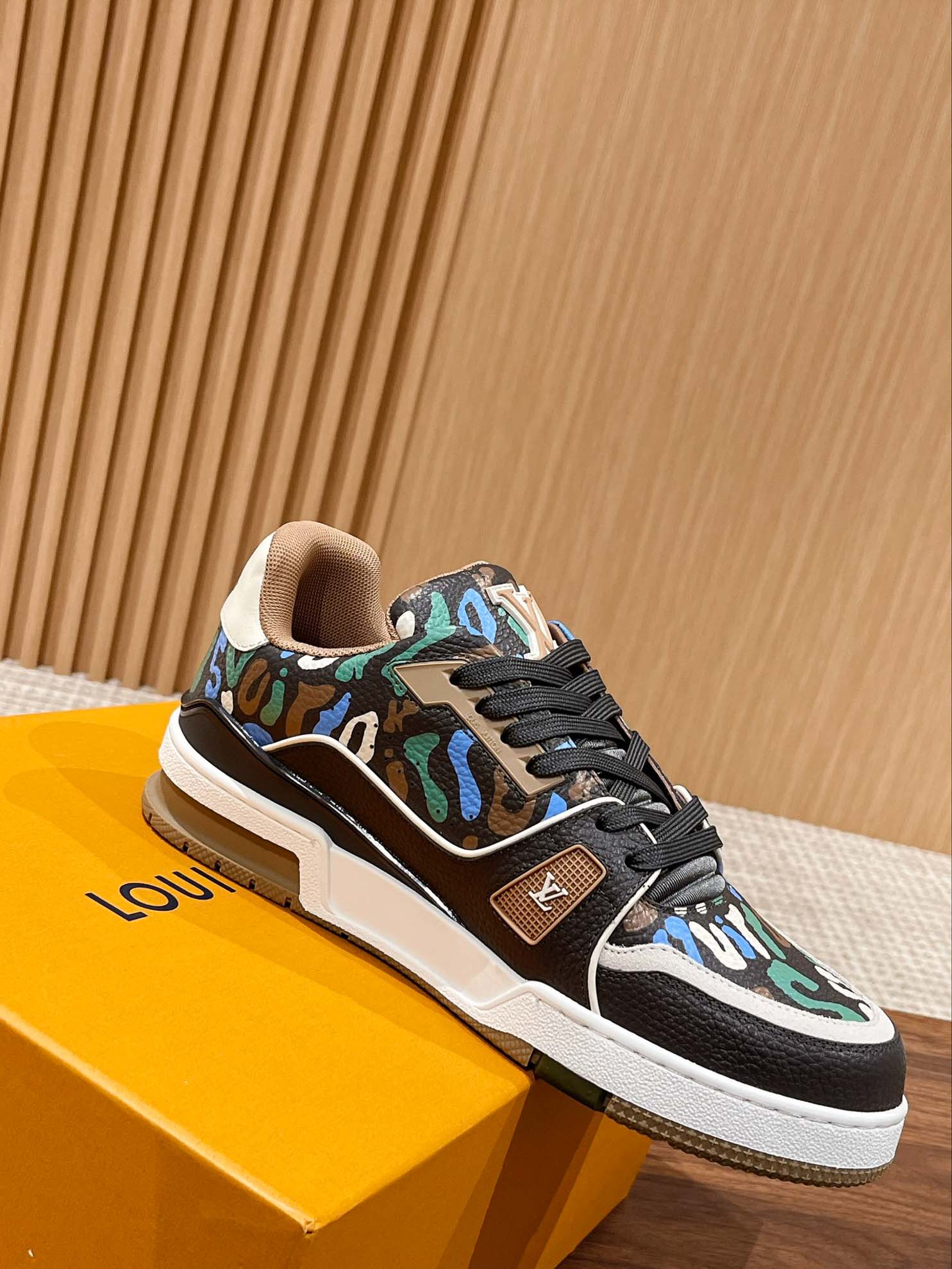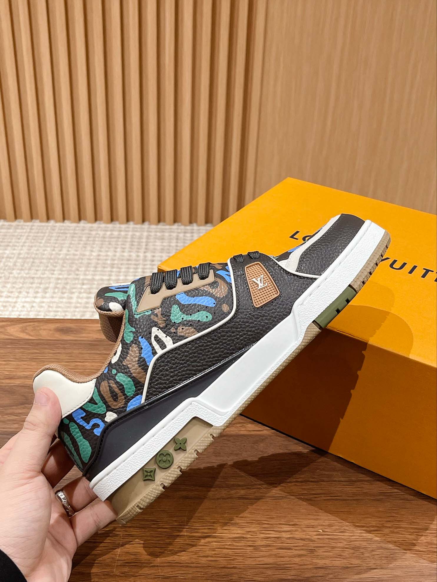 Giày Louis Vuitton Lv Trainer #54 Khaki Green Camouflage Printed Canvas Best Quality