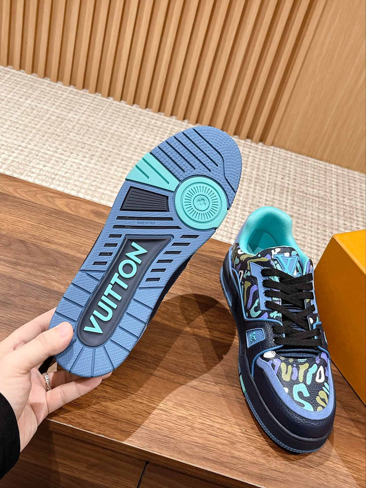 Giày Louis Vuitton Lv Trainer #54 Navy Blue Camouflage Printed Canvas Best Quality