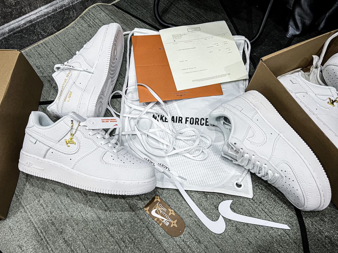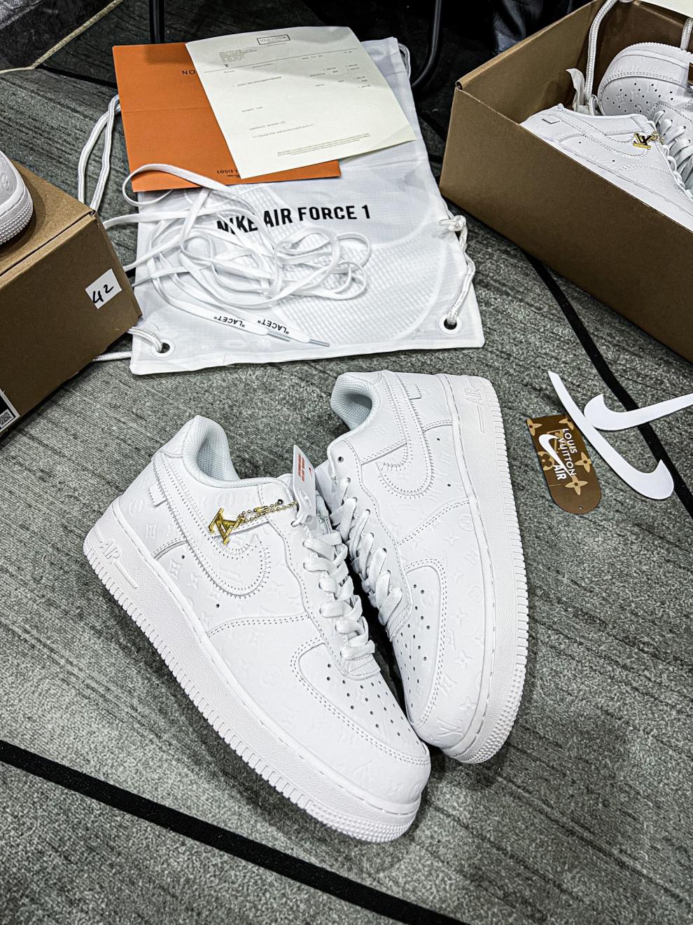 LOUIS VUITTON X NIKE AIR FORCE 1 White nằm trong bộ sưu tập cuối cùng của cố Giám đốc sáng tạo Virgil Abloh. Đối với bản Auth, đôi giày được làm 100% thủ công bởi các nghệ nhân của Louis Vuitton. Bản collab đình đám này được ra mắt giới hạn và chỉ bán cho những khách hàng vô cùng may mắn và VIP của nhãn hàng LV.