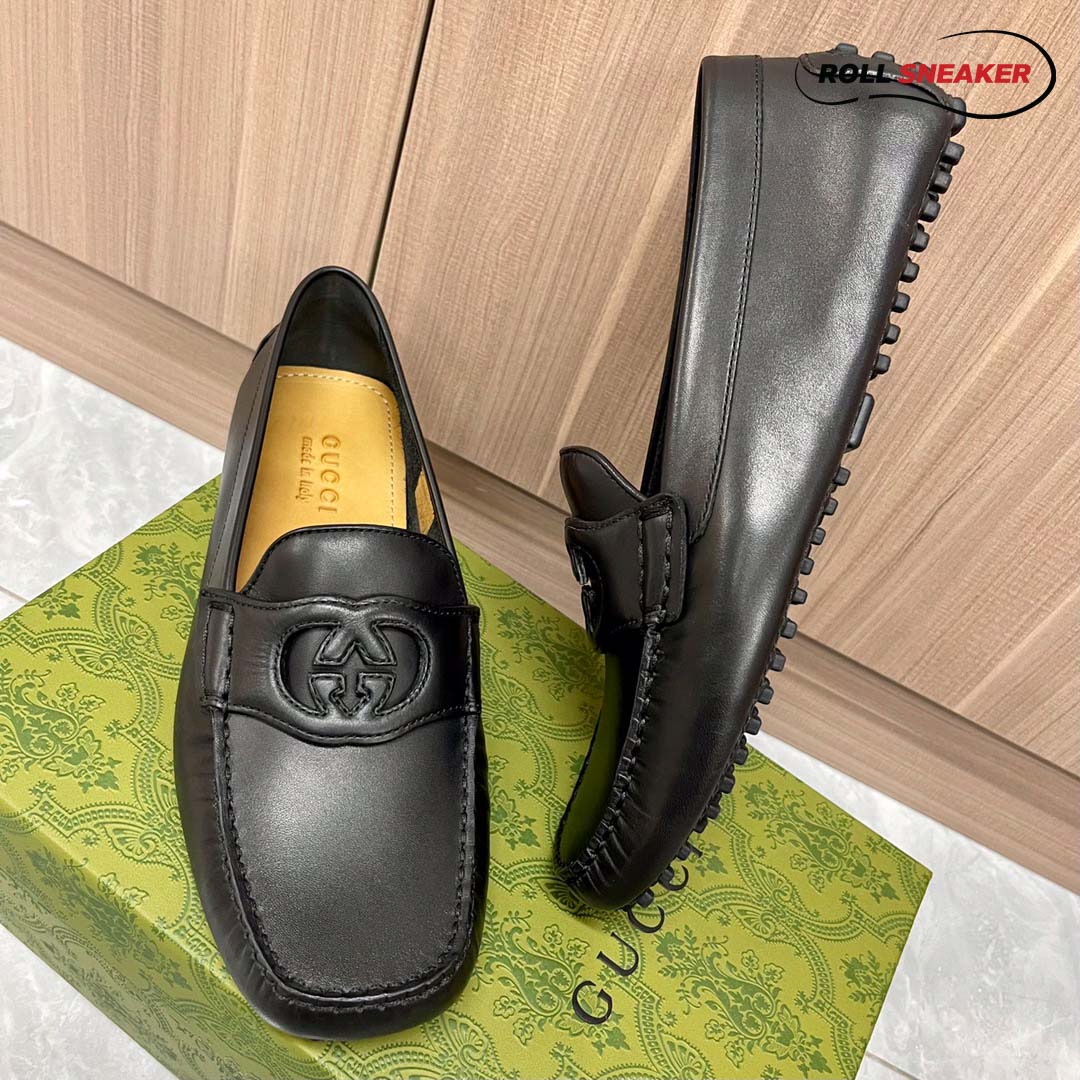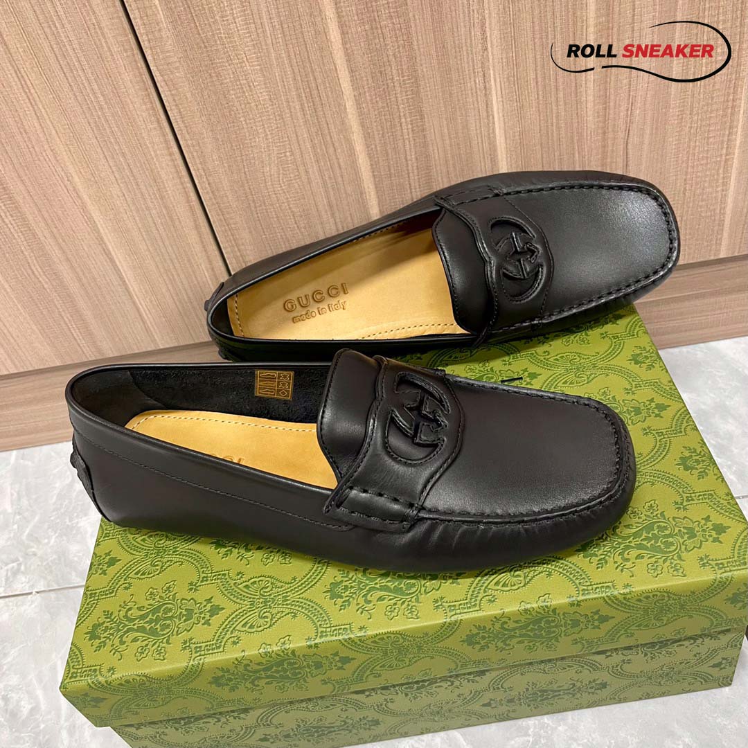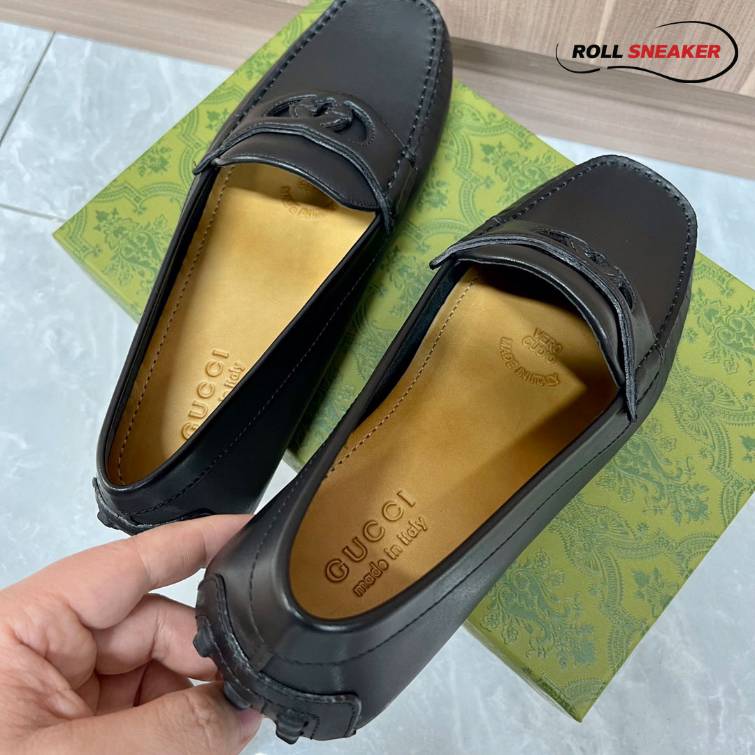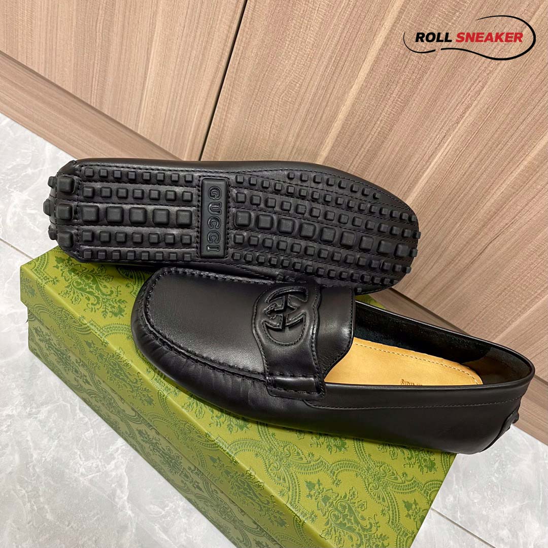 Giày Lười Gucci Men’s Interlocking G driver Black Đen Da Trơn
