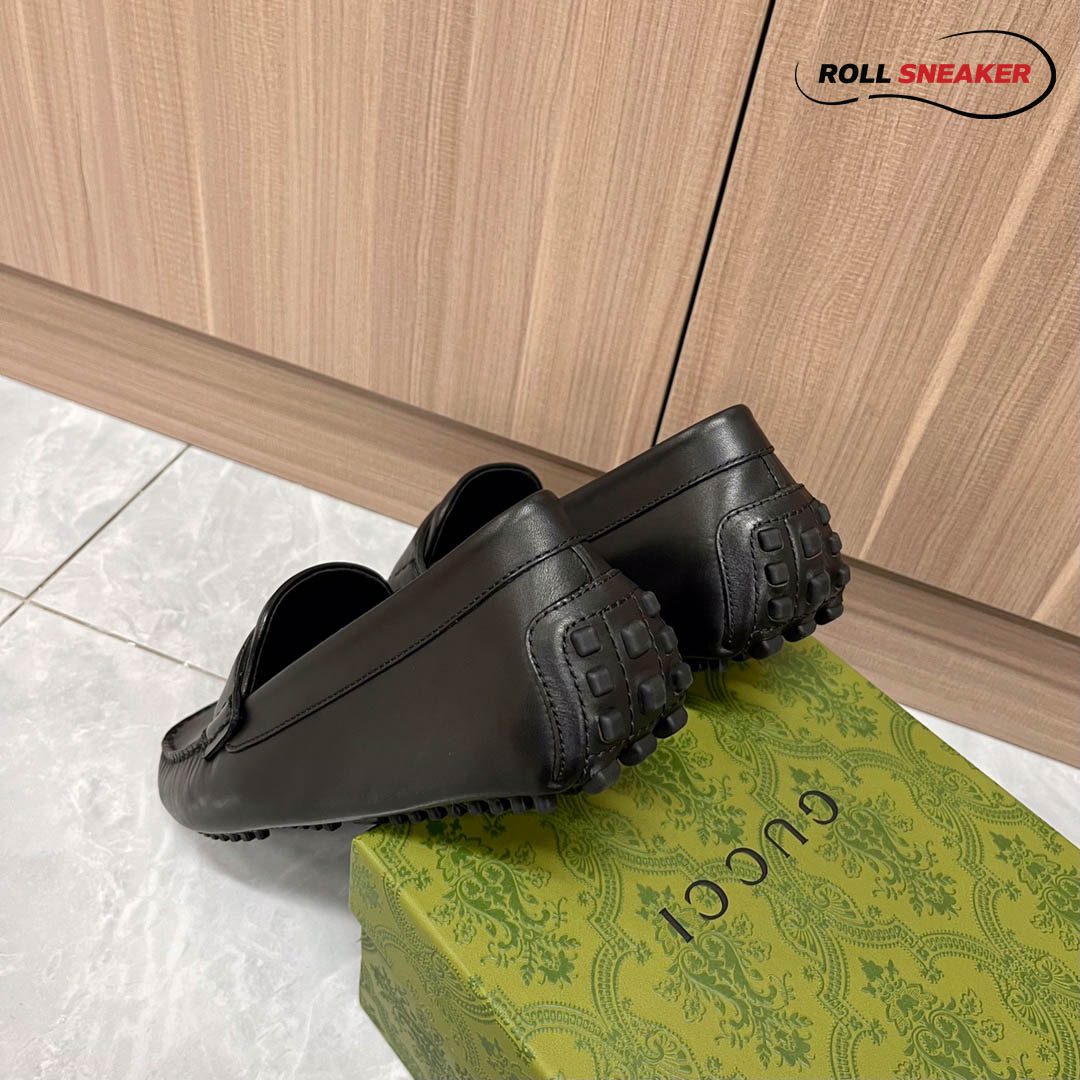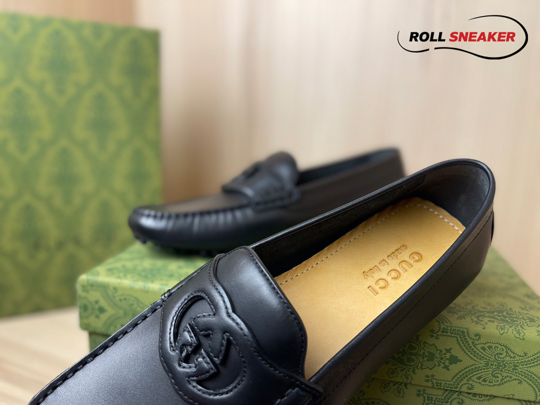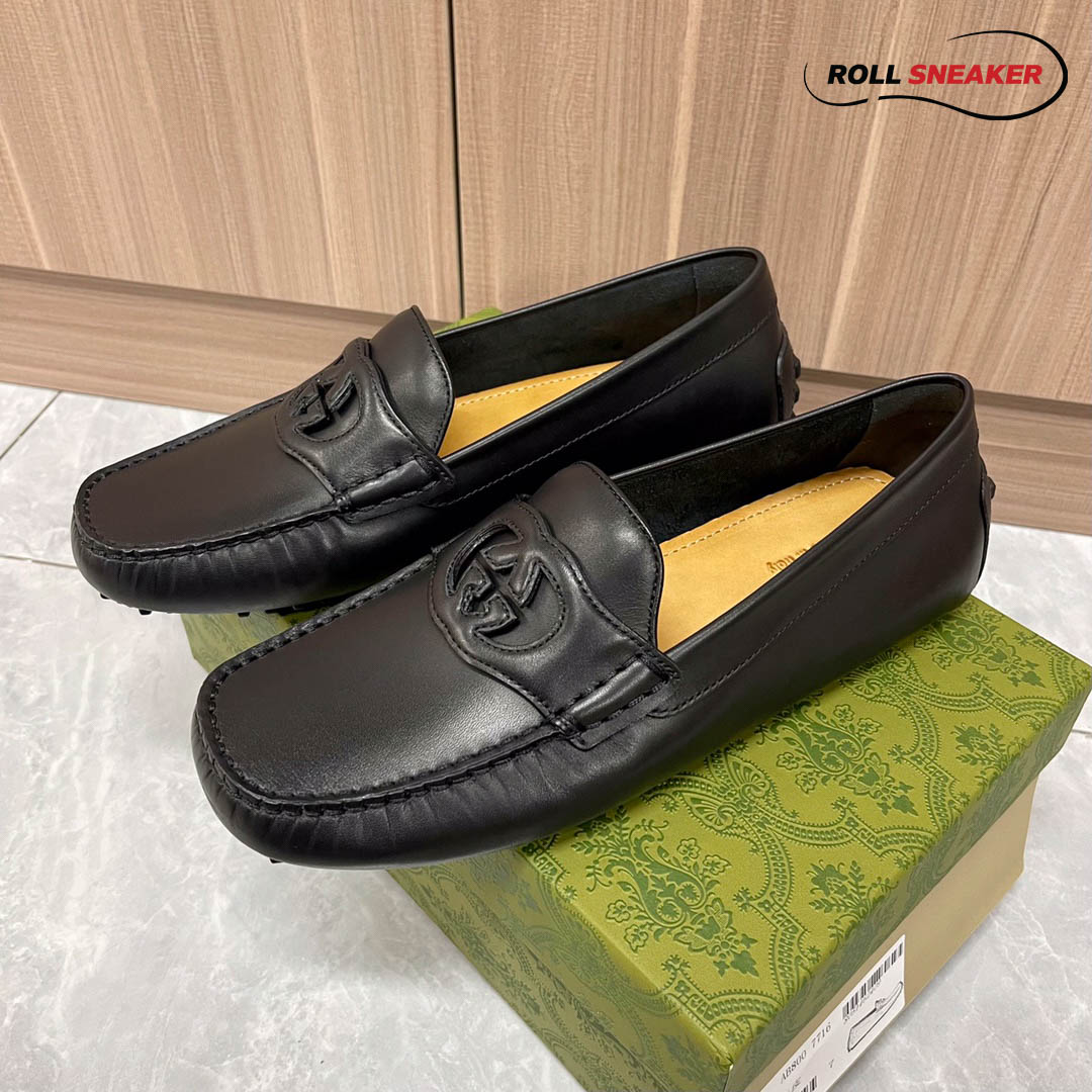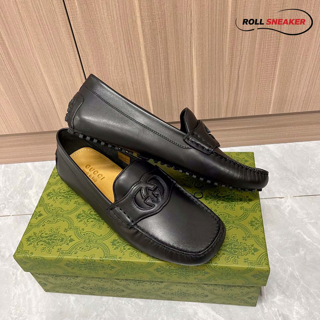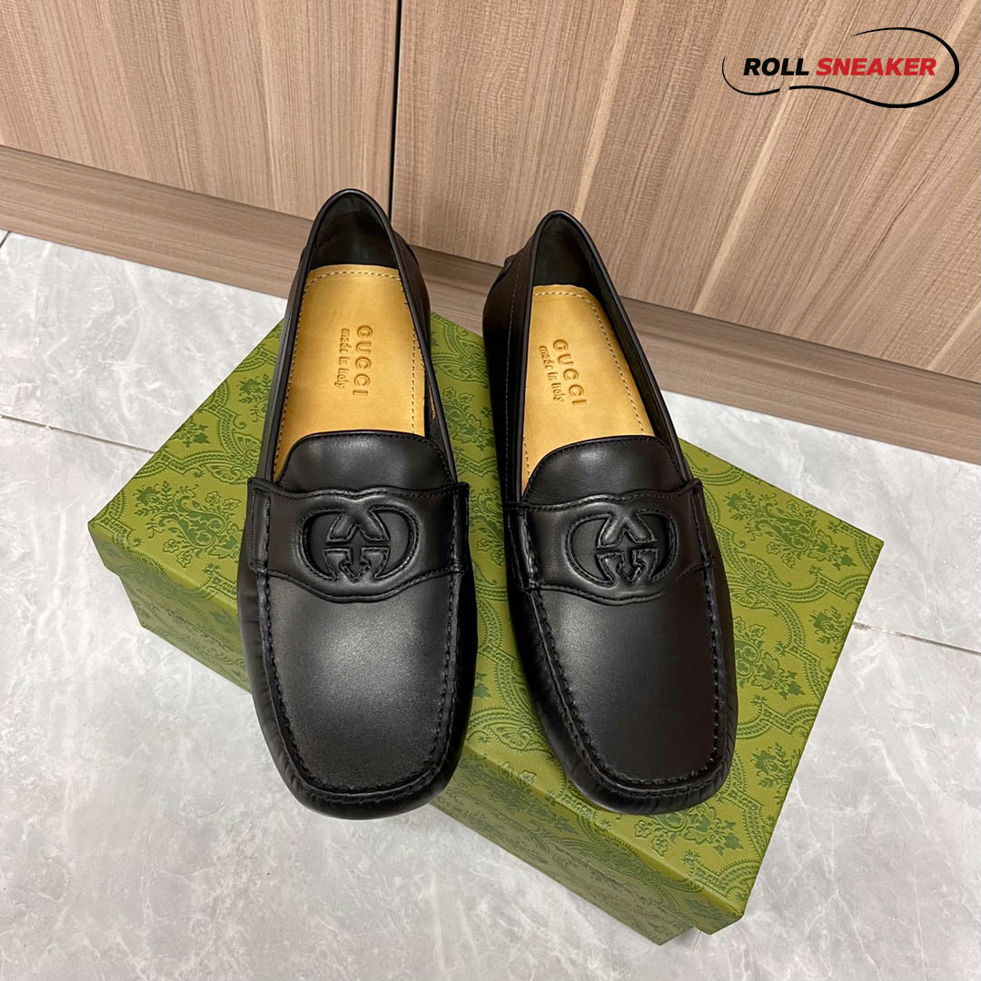 Giày Lười Gucci Men’s Interlocking G driver Black Đen Da Trơn