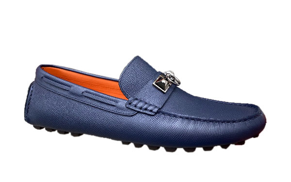 Giày lười Hermes Irving Loafer Xanh lót Cam Da Bê có Vân