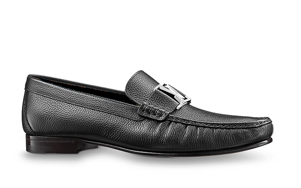 Giày lười Louis Vuitton Montaigne Loafers Black Da Nhăn Logo LV Bạc
