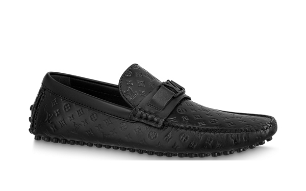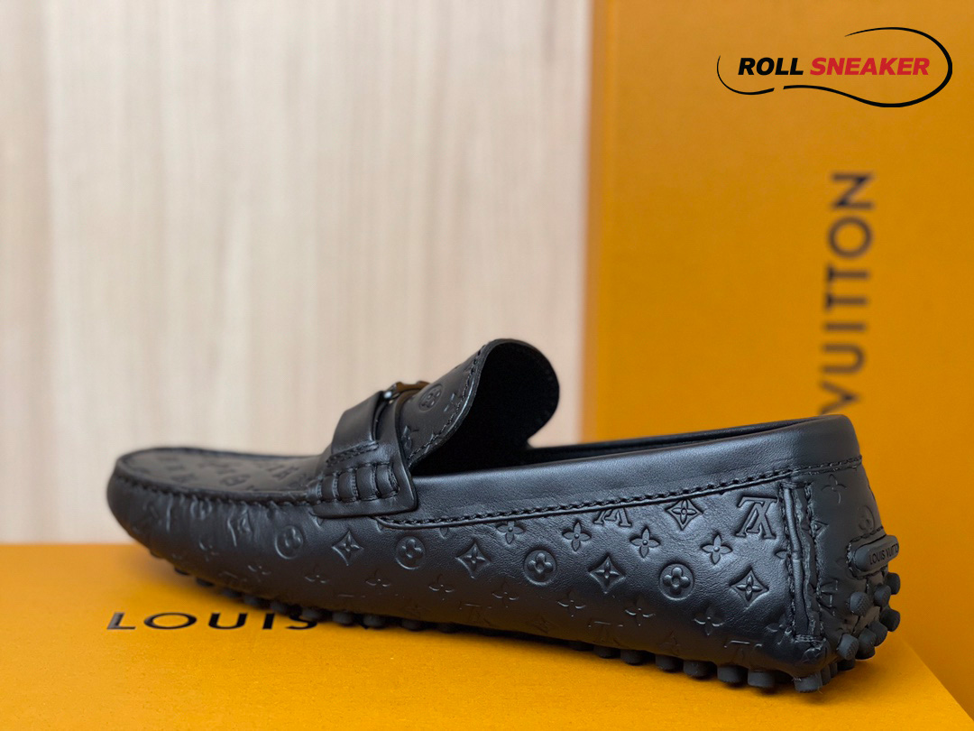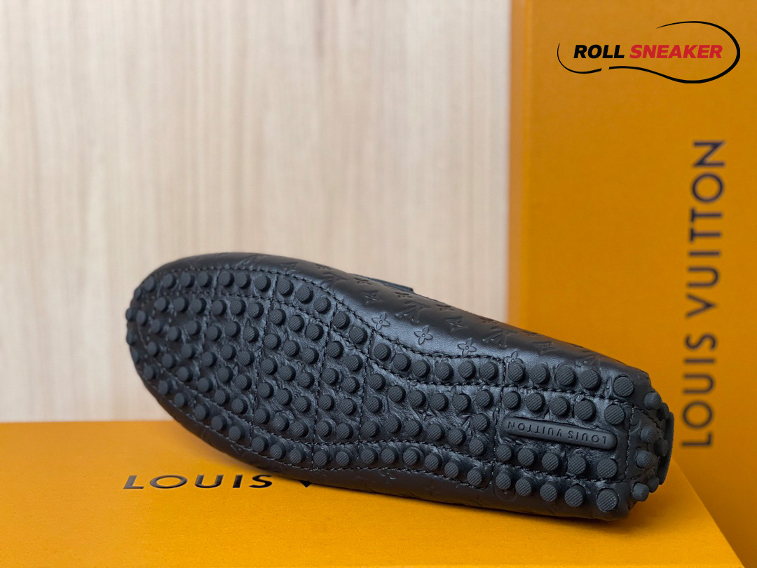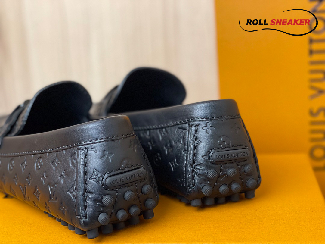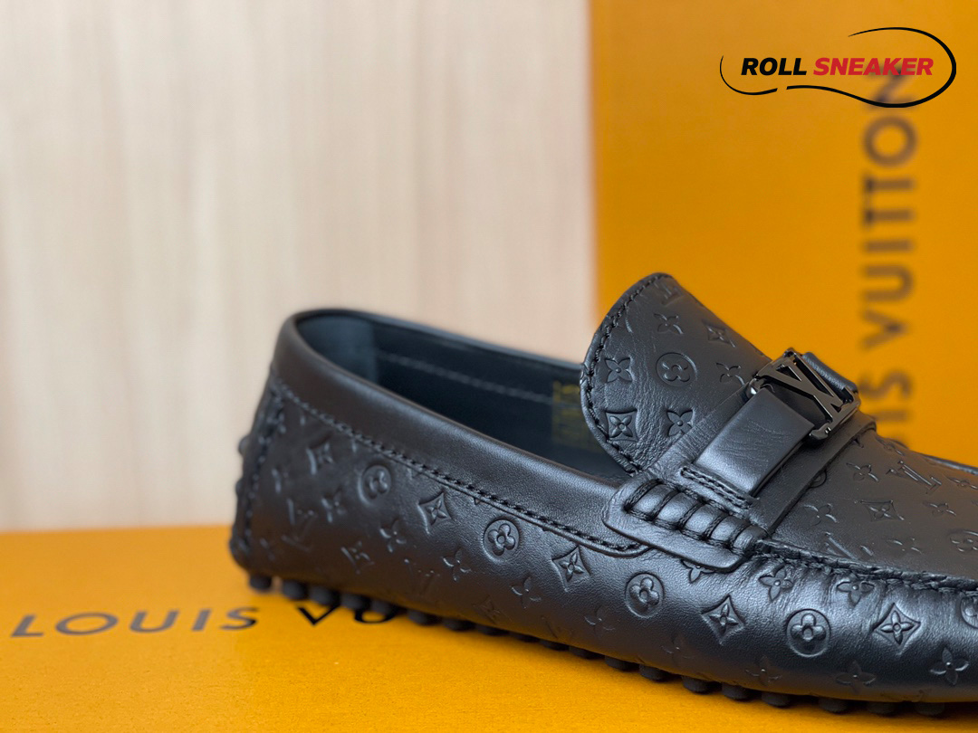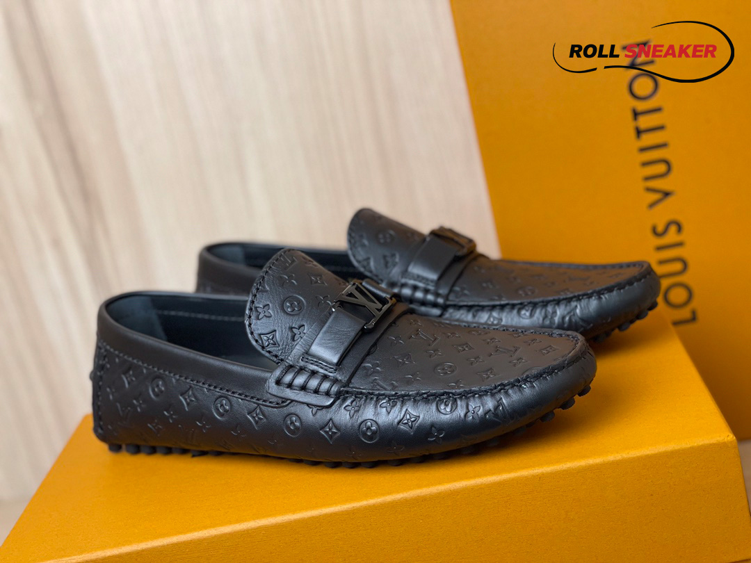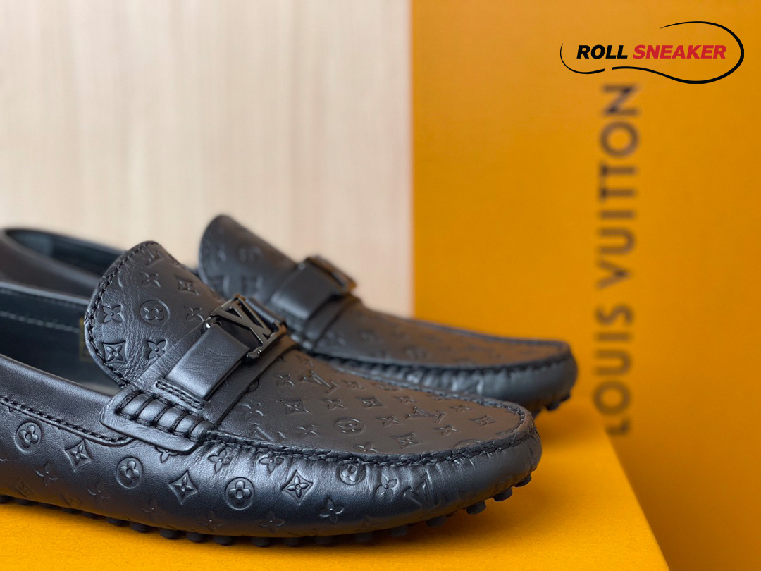 Giày lười LV Hockenheim Moca Black Da Bê Dập Nổi Hoạ Tiết Mini Monogram Logo LV Đen