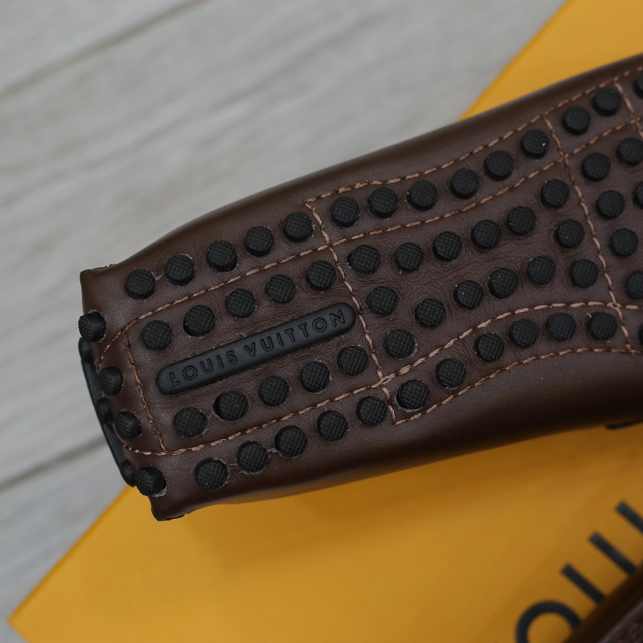 Giày lười LV Major Hockenheim Mocassin Brown Da Bê Họa Tiết Monogram Canvas Logo LV Bạc
