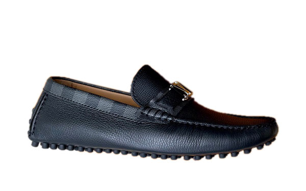 Giày lười LV Hockenheim Mocassin Da Bê Có Vân Họa Tiết Damier Logo LV Bạc