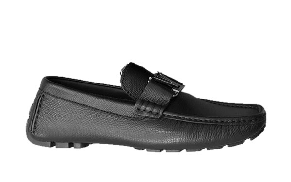 Giày Lười LV Montaigne Monte Carlo Mocassin Black Da Bê Nhăn Khóa Logo Bạc Bóng