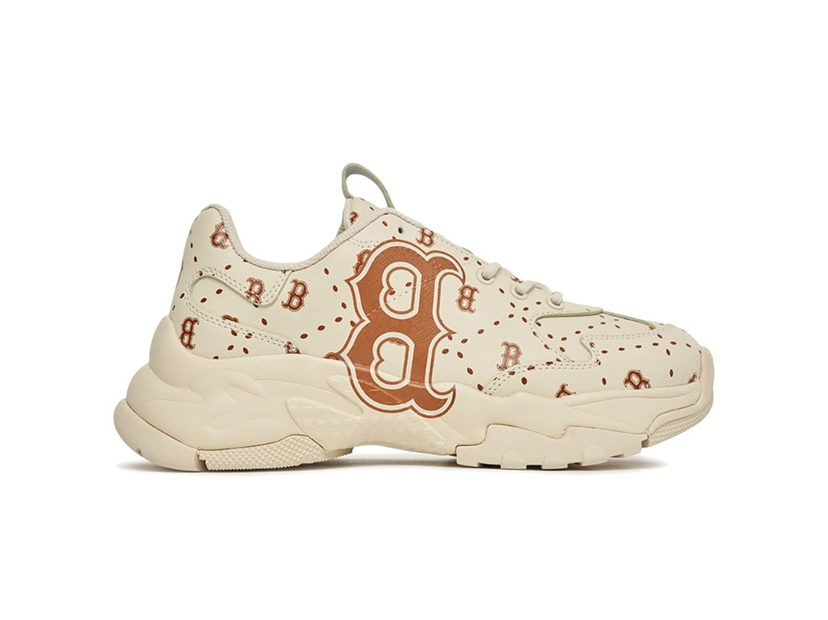 Giày MLB BigBall Chunky Saffiano Diamond Monogram Boston Red Sox Beige Like Auth