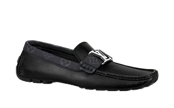 Giày Moca LV Monte Carlo Black Da Bê Tron Monogram Canvas Khóa Logo B?c Bóng