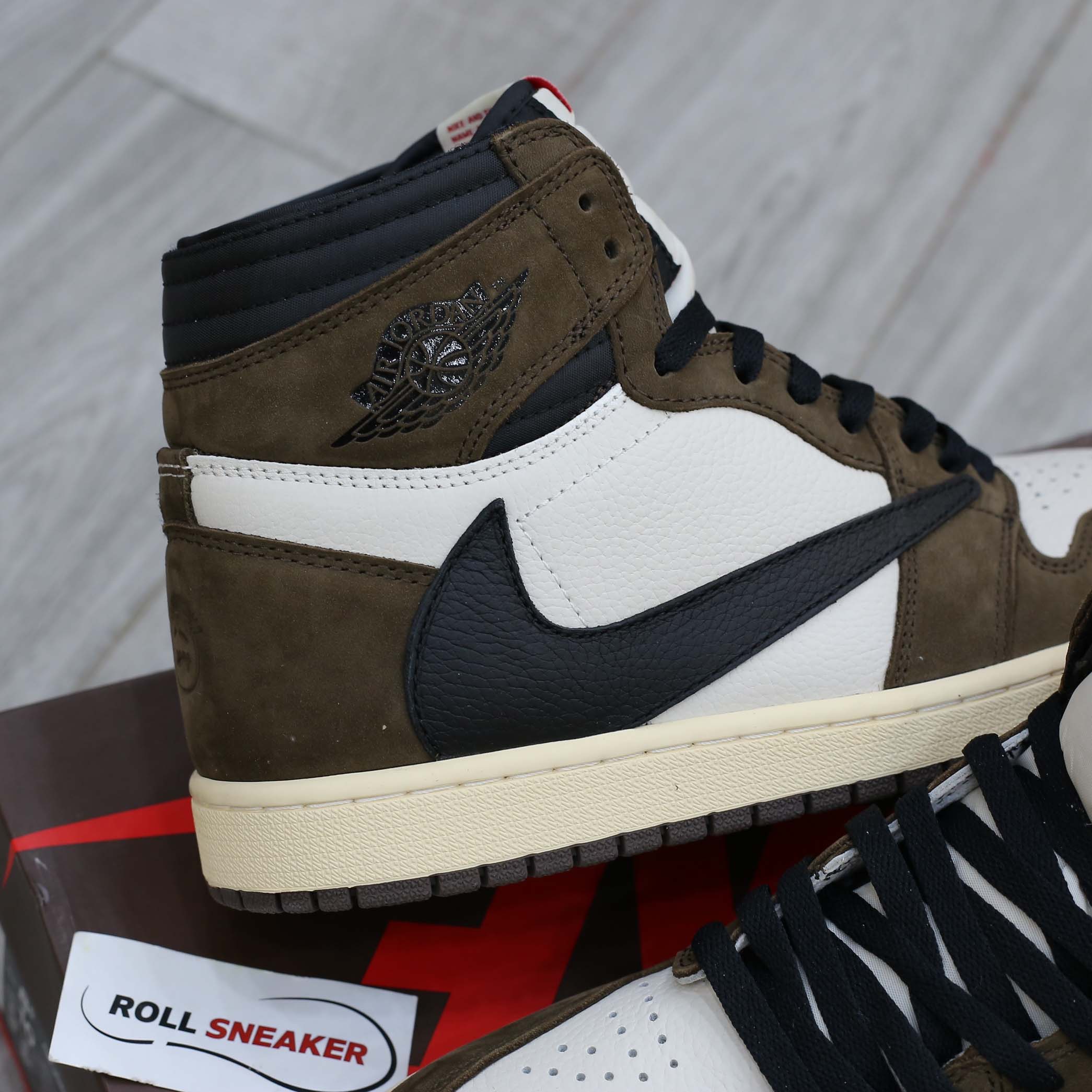 Đôi Jordan 1 high Travis Scott là sự kết hợp giữa màu trắng và màu nâu theo tone màu Mocha. Có thể bạn đã biết, màu nâu chính là màu sắc ưa thích của Travis Scott, do vậy, mẫu giày thực sự mang linh hồn hip-hop của nam rapper này. Hơn nữa, đây cũng là phối màu độc đáo chưa từng được sử dụng trước đó của gia đình Jordan 1.