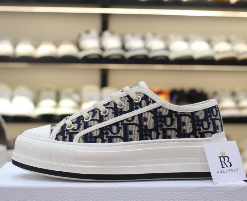 Giày WALK’N’DIOR PLATFORM Low-Top SNEAKER Deep Blue Dior Oblique Embroidered Cotton