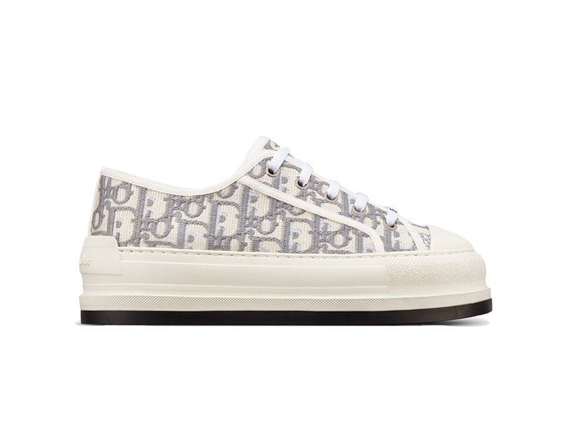 Giày WALK’N’DIOR PLATFORM SNEAKER Gray Stone Dior Oblique Embroidered Cotton