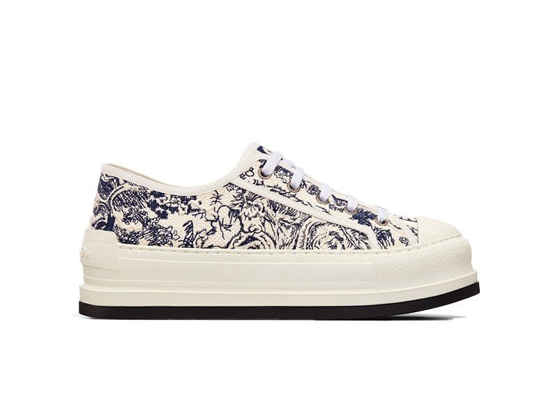 Giày WALK’N’DIOR PLATFORM SNEAKER White Embroidered Cotton with Blue Toile de Jouy Motif