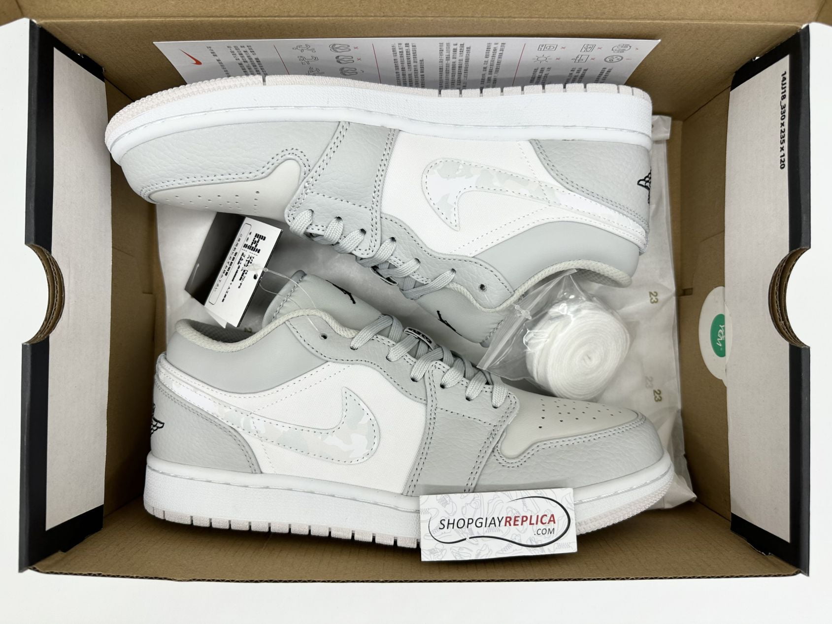 Lựa chọn mua giày Nike Jordan 1 Low White Camo rep 1:1 tại Shop Giay Replica, bạn không chỉ nhận được sản phẩm chất lượng với mức giá cạnh tranh mà còn có cơ hội trải nghiệm chính sách dịch vụ tuyệt vời. Chúng tôi cam kết mỗi sản phẩm đến tay khách hàng đều xứng đáng với số tiền mà họ bỏ ra. Hãy liên hệ ngay hôm nay để nhận được hỗ trợ và tư vấn tốt nhất!